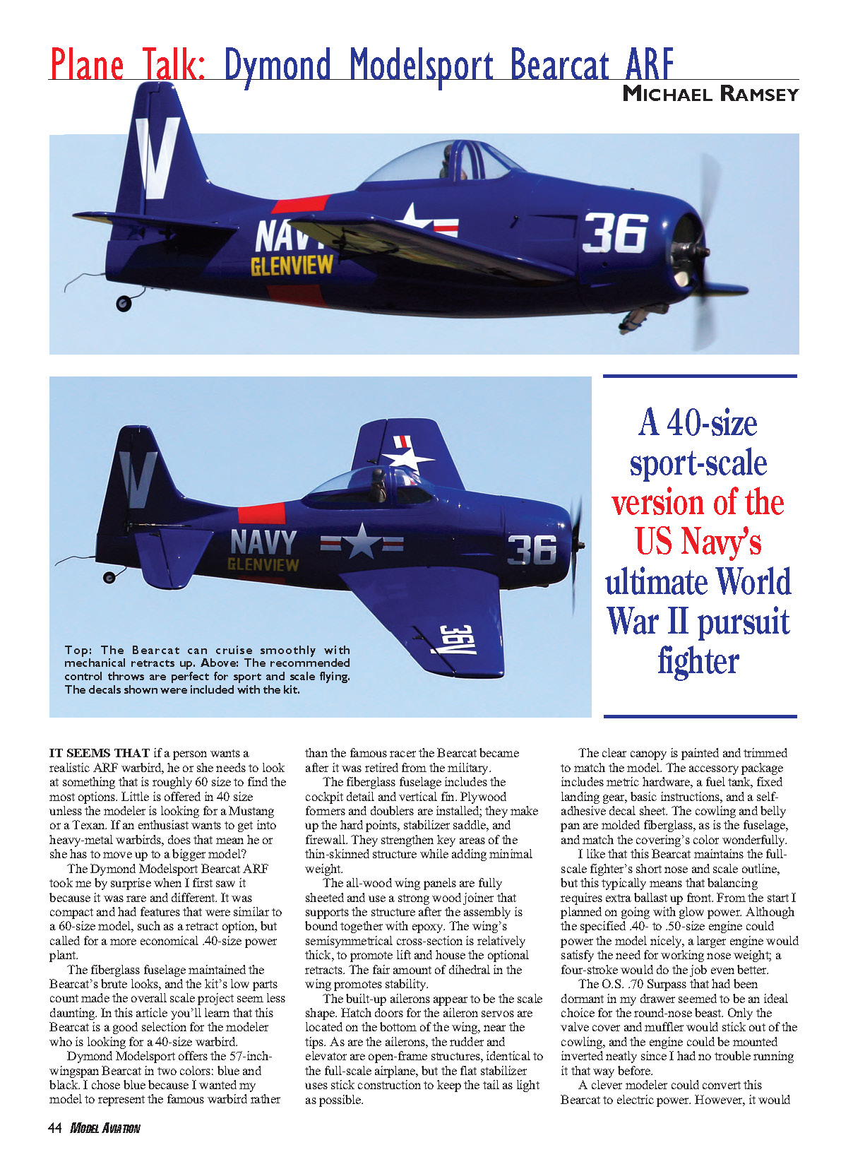 Plane Talk: Dymond Modelsport Bearcat ARF