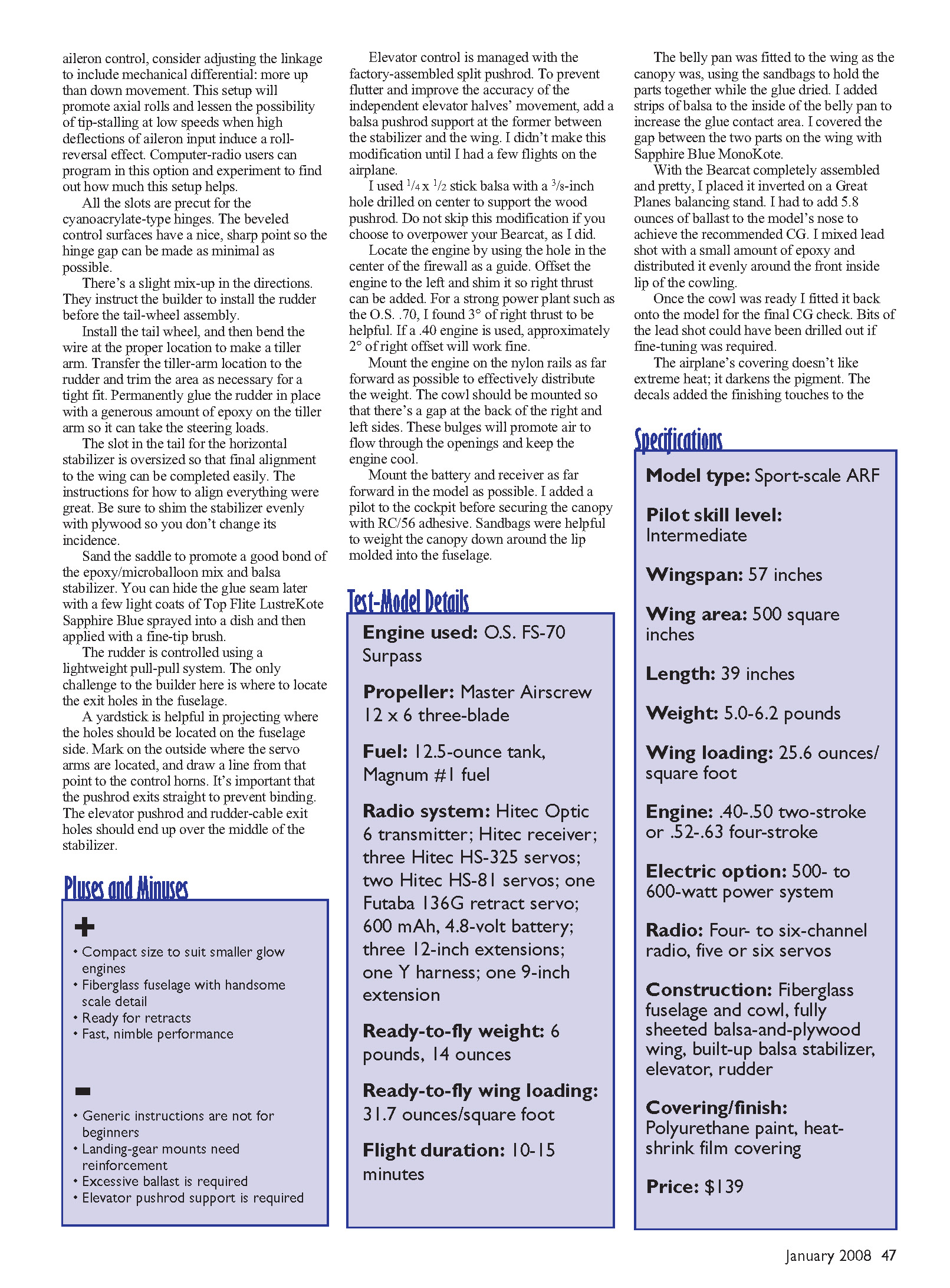 The Bearcat parts count is low. The fiberglass molded fuselage is stiff and straight. The