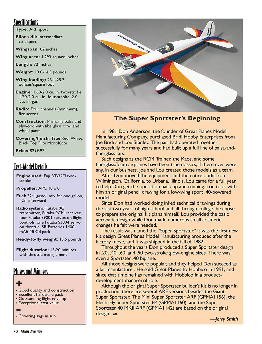 THE GREAT PLANES Giant Super Sportster ARF is a look-alike of