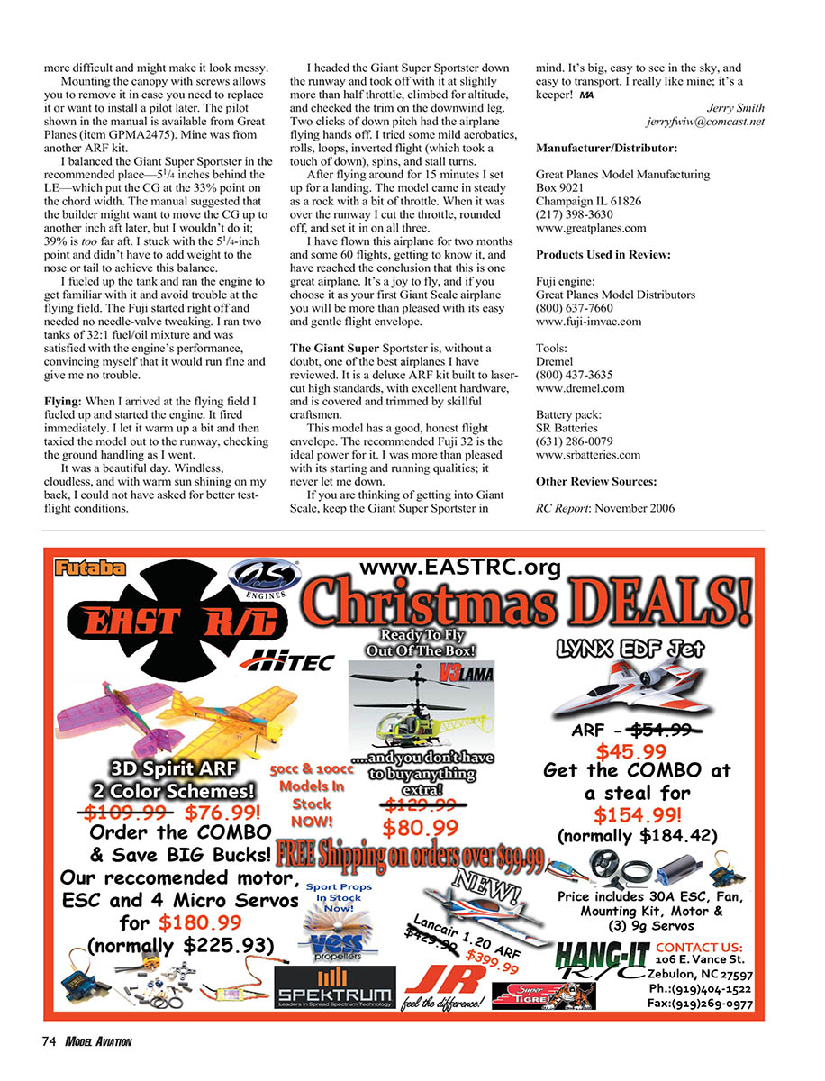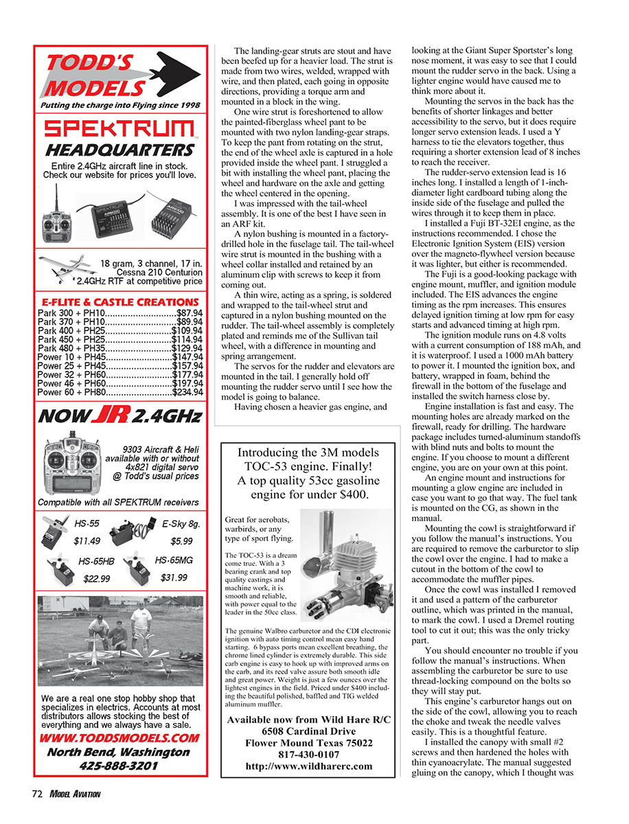 what it does best: fly. This ARF comes complete; it’s a deluxe package.