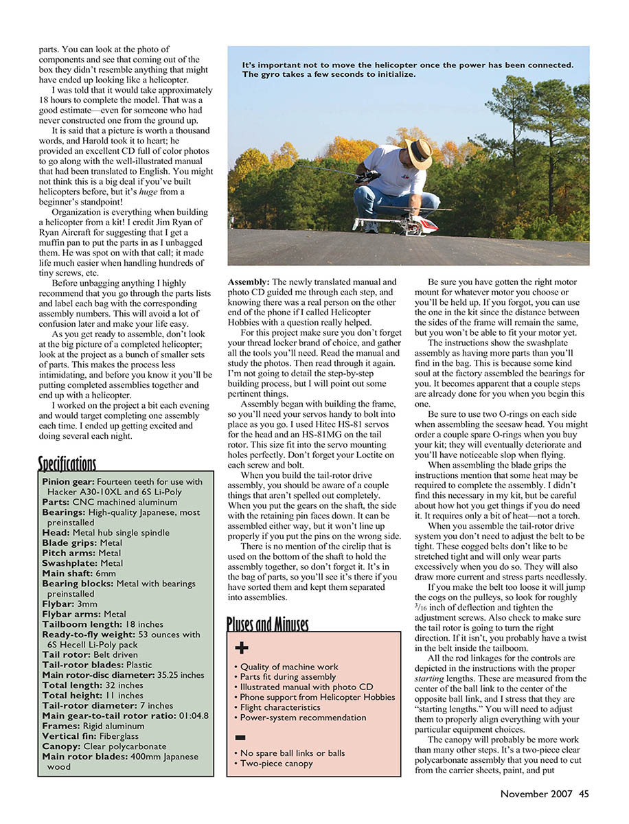 Harold Little of Helicopter Hobbies and studied the kit. The