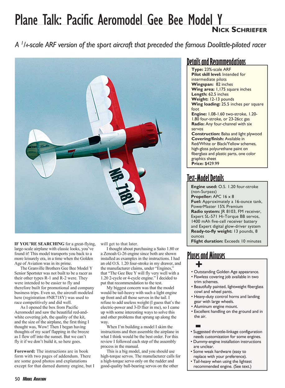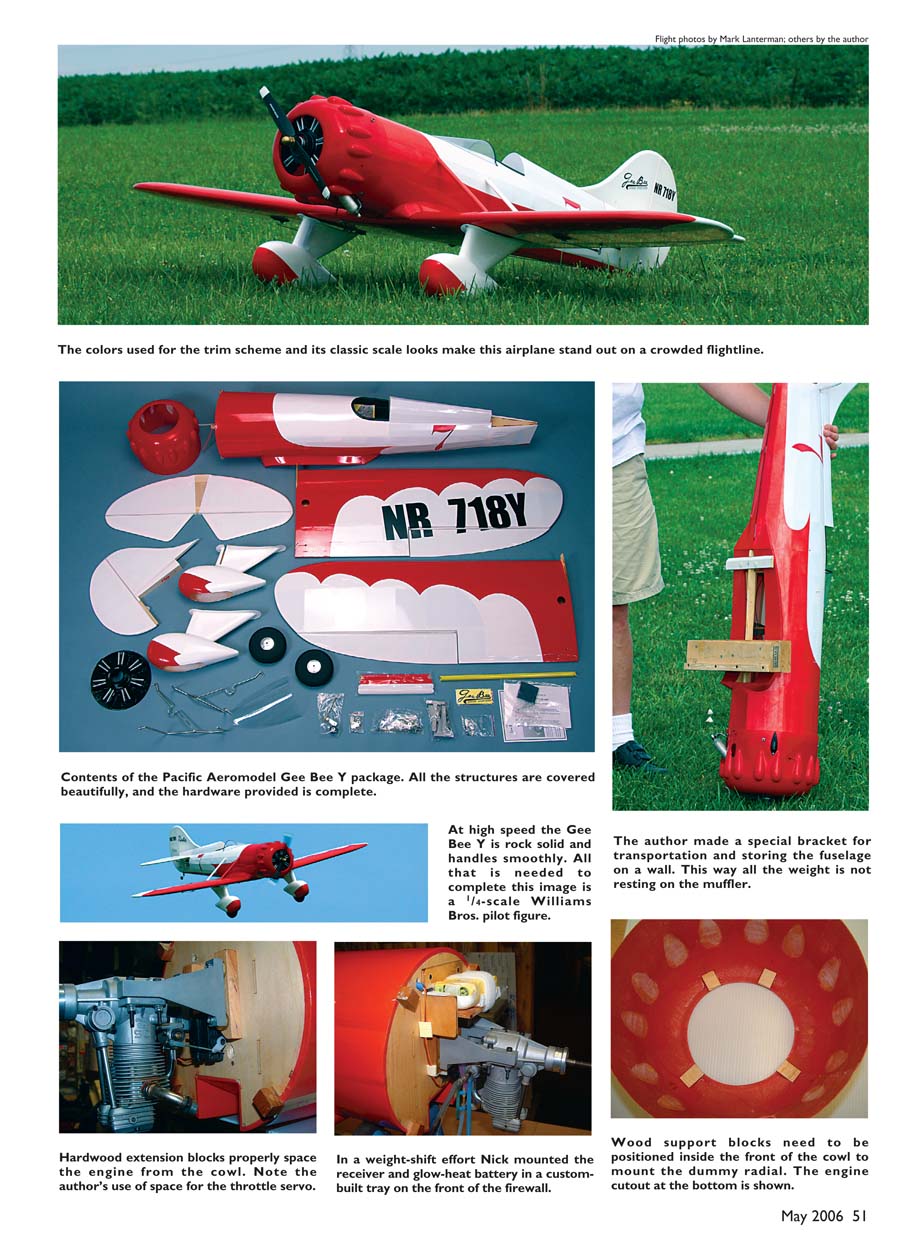 Contents of the Pacific Aeromodel Gee Bee Y package. All the structures are covered