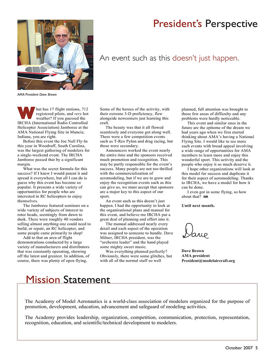 The Academy of Model Aeronautics is a world-class association of modelers organized for the purpose of