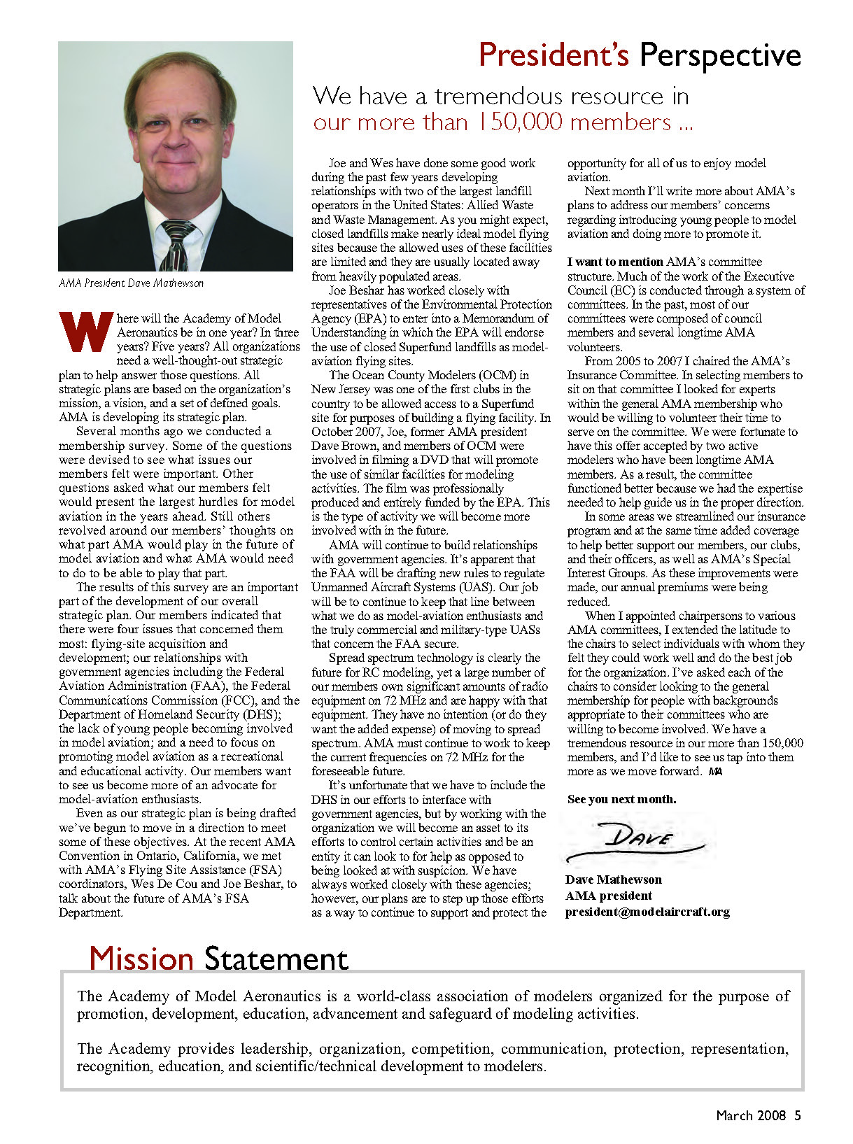 The Academy of Model Aeronautics is a world-class association of modelers organized for the purpose of
