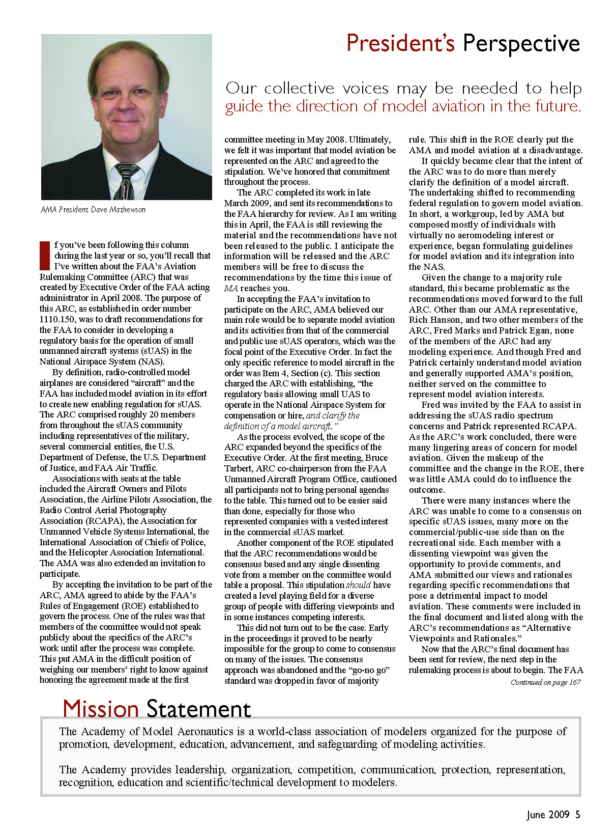 The Academy of Model Aeronautics is a world-class association of modelers organized for the purpose of