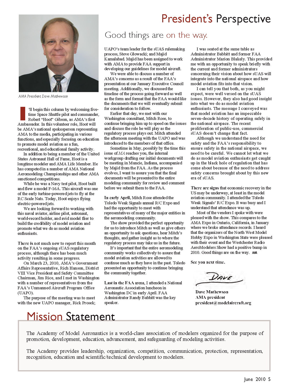The Academy of Model Aeronautics is a world-class association of modelers organized for the purpose of