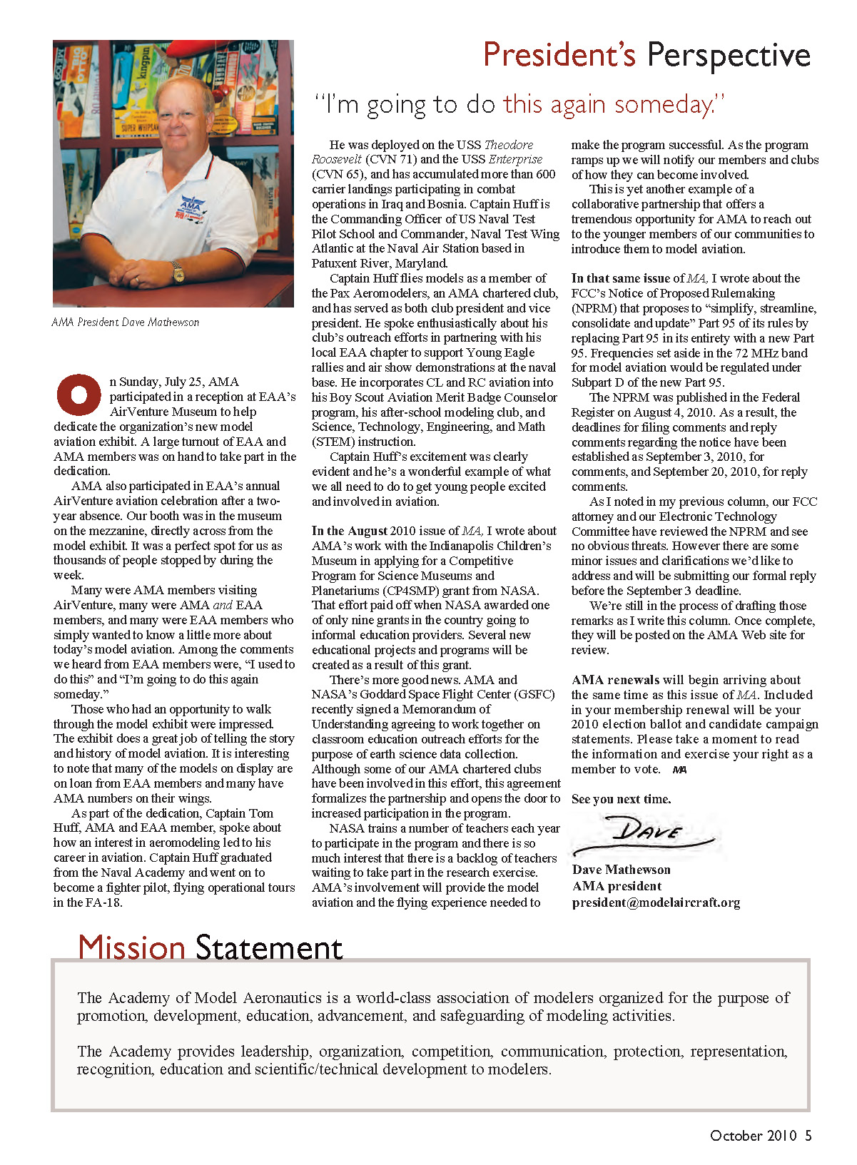 The Academy of Model Aeronautics is a world-class association of modelers organized for the purpose of