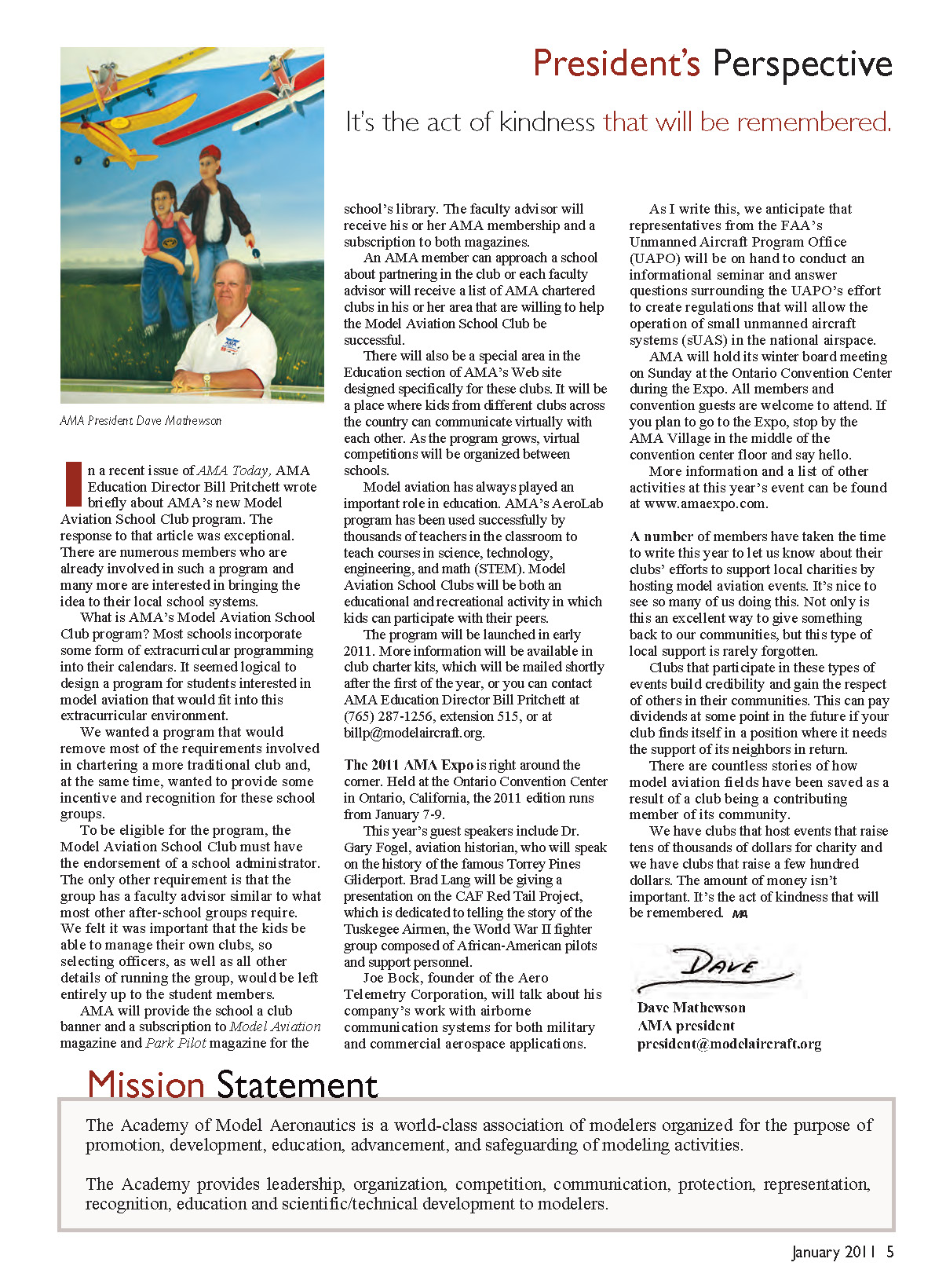 The Academy of Model Aeronautics is a world-class association of modelers organized for the purpose of