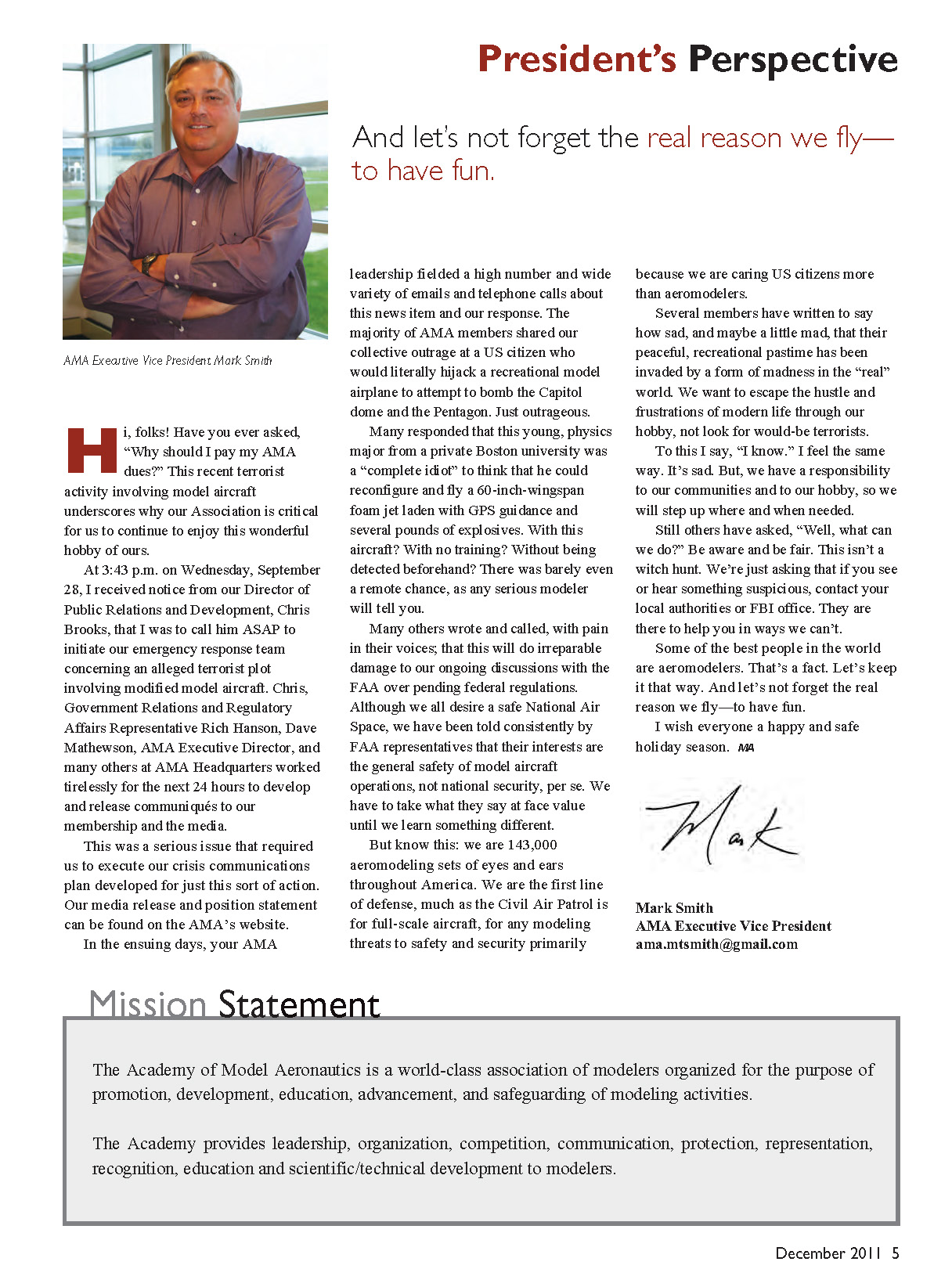 The Academy of Model Aeronautics is a world-class association of modelers organized for the purpose of