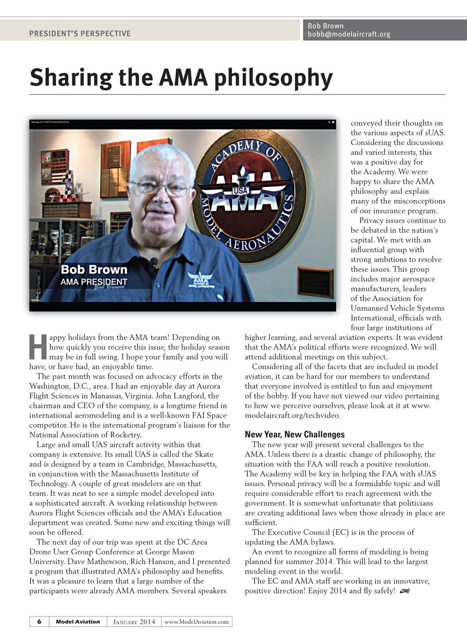 The AMA council and staff are working in an innovative, positive direction! Enjoy 2014 and fly safely!