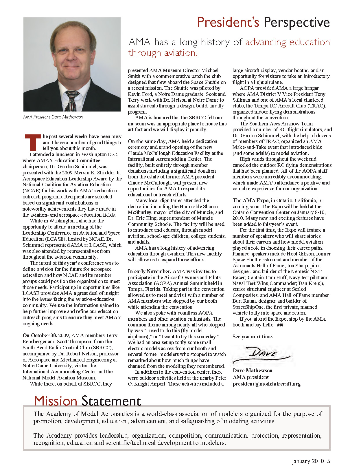 The Academy of Model Aeronautics is a world-class association of modelers organized for the purpose of
