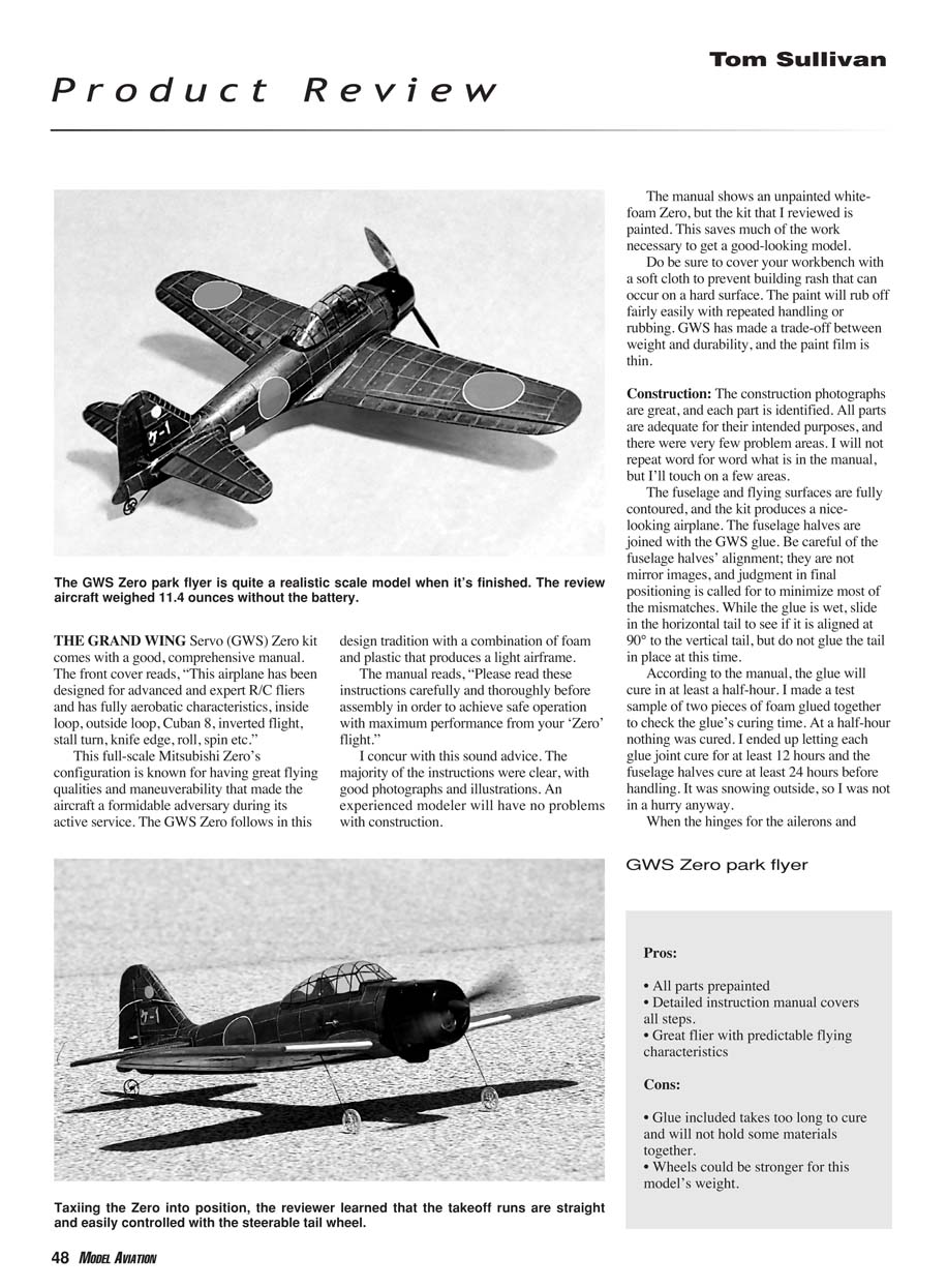 The GWS Zero park flyer is quite a realistic scale model when it’s finished. The review