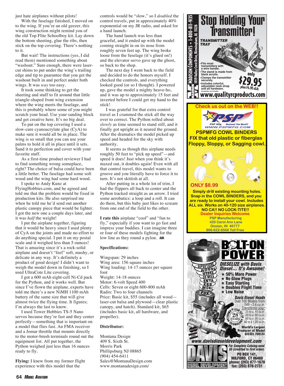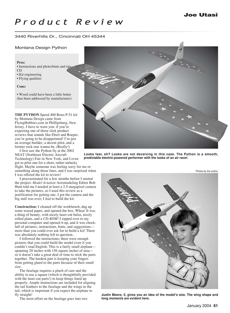 Designer/producer Andy Kunz of FlyingHobbies.com built this Python. He finished it in
