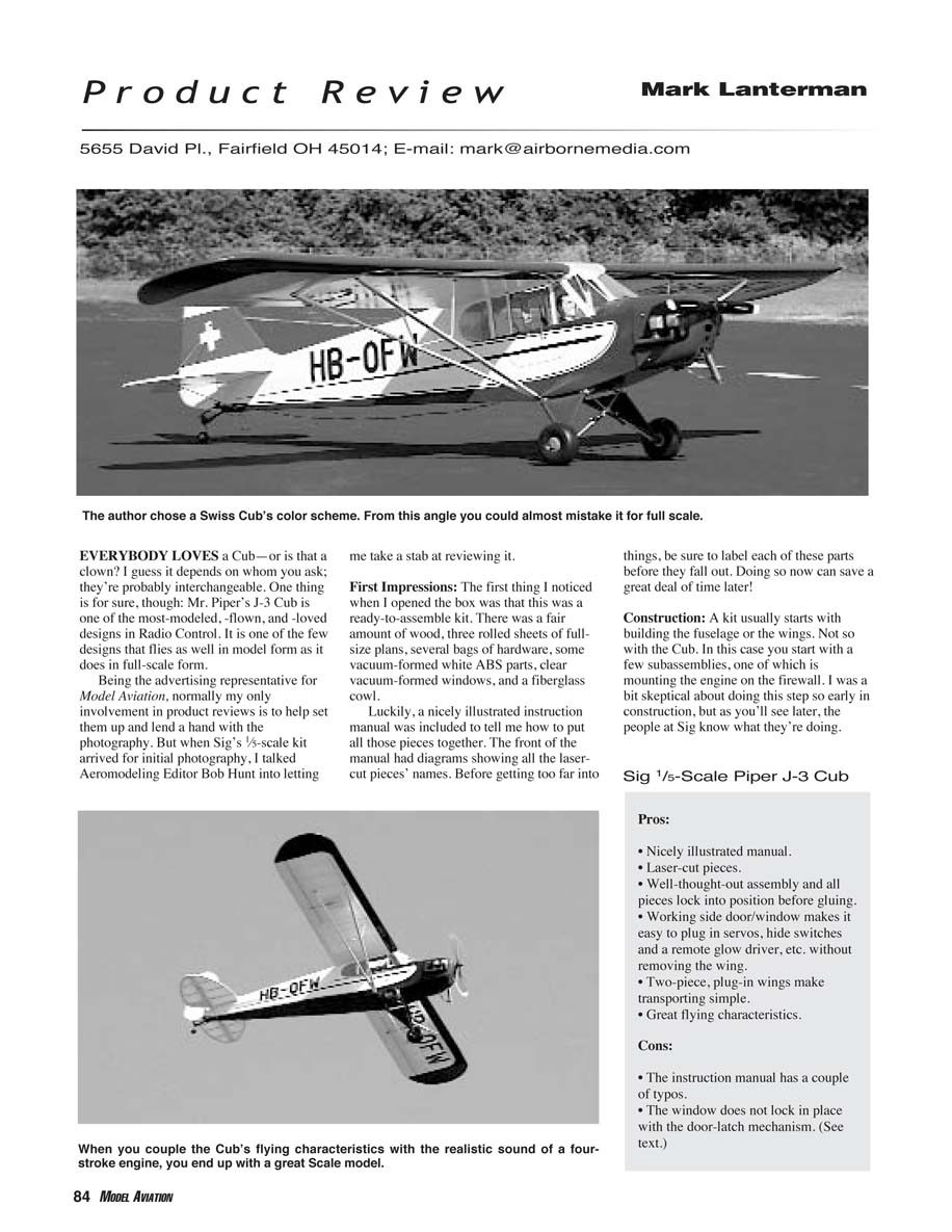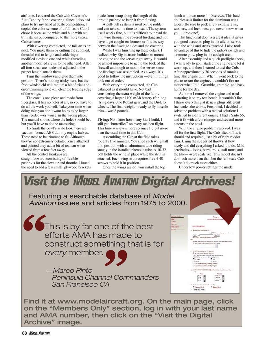 When you couple the Cub’s flying characteristics with the realistic sound of a fourstroke