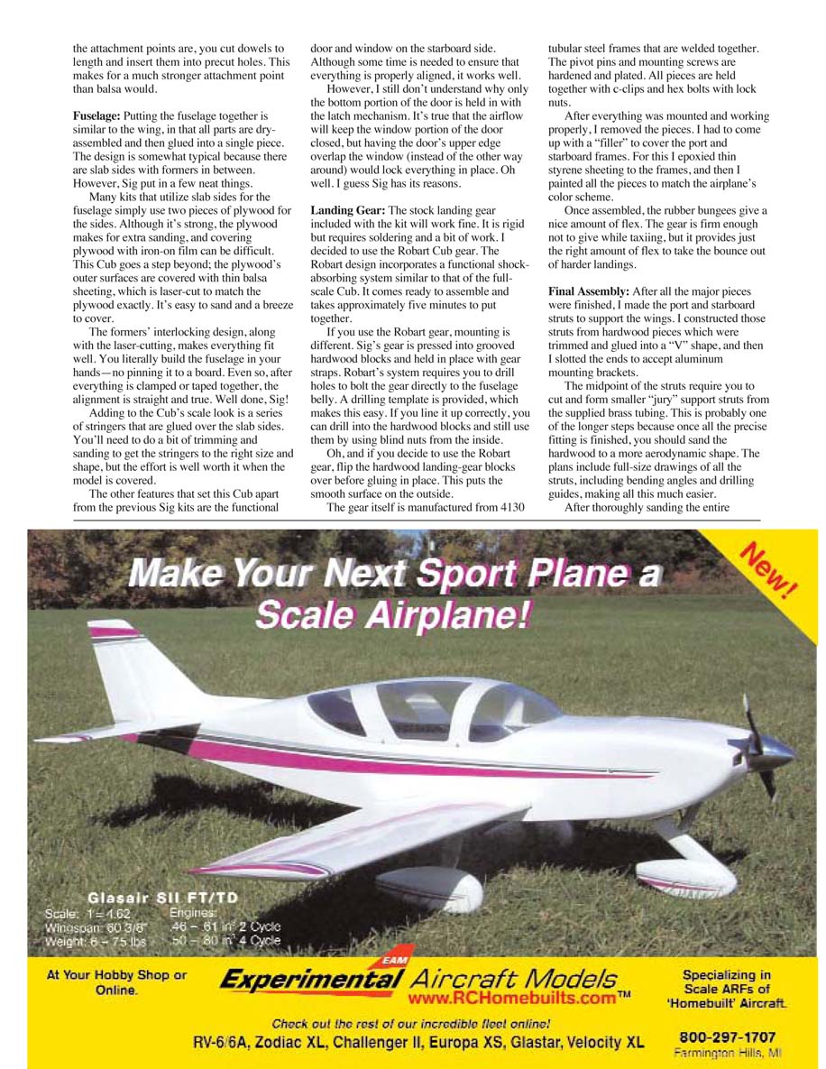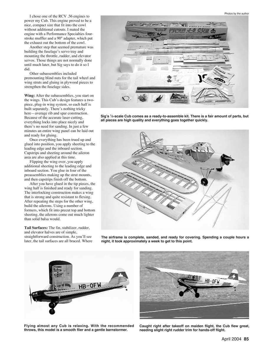 Sig’s 1⁄5-scale Cub comes as a ready-to-assemble kit. There is a fair amount of parts, but