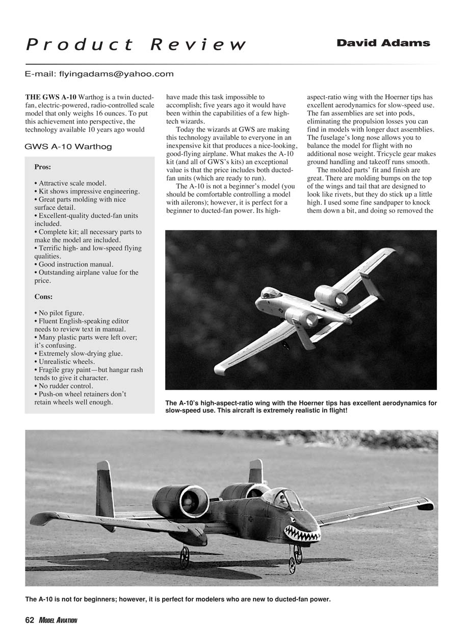The A-10 is not for beginners; however, it is perfect for modelers who are new to ducted-fan power.