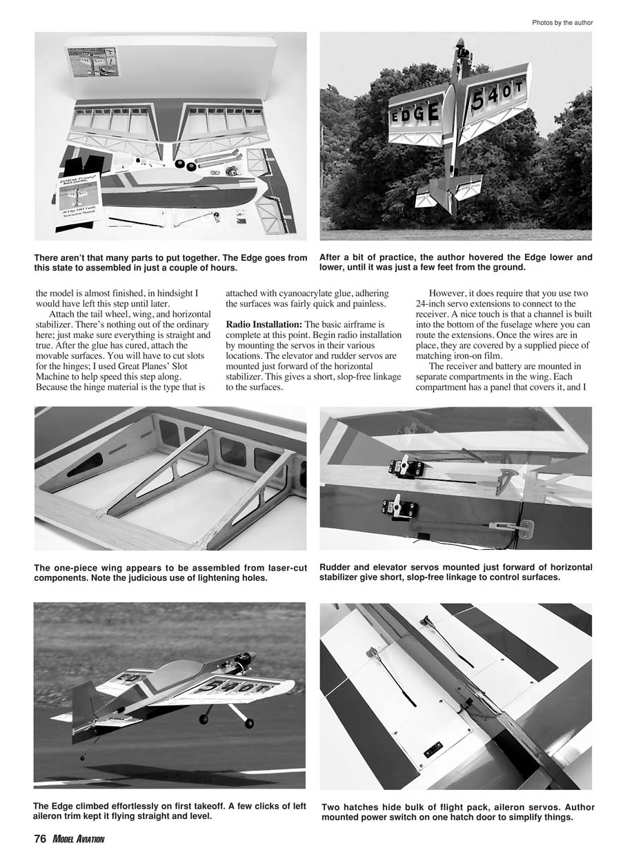 The review Edge 540, ready for its maiden flight, weighs 4.2 pounds.