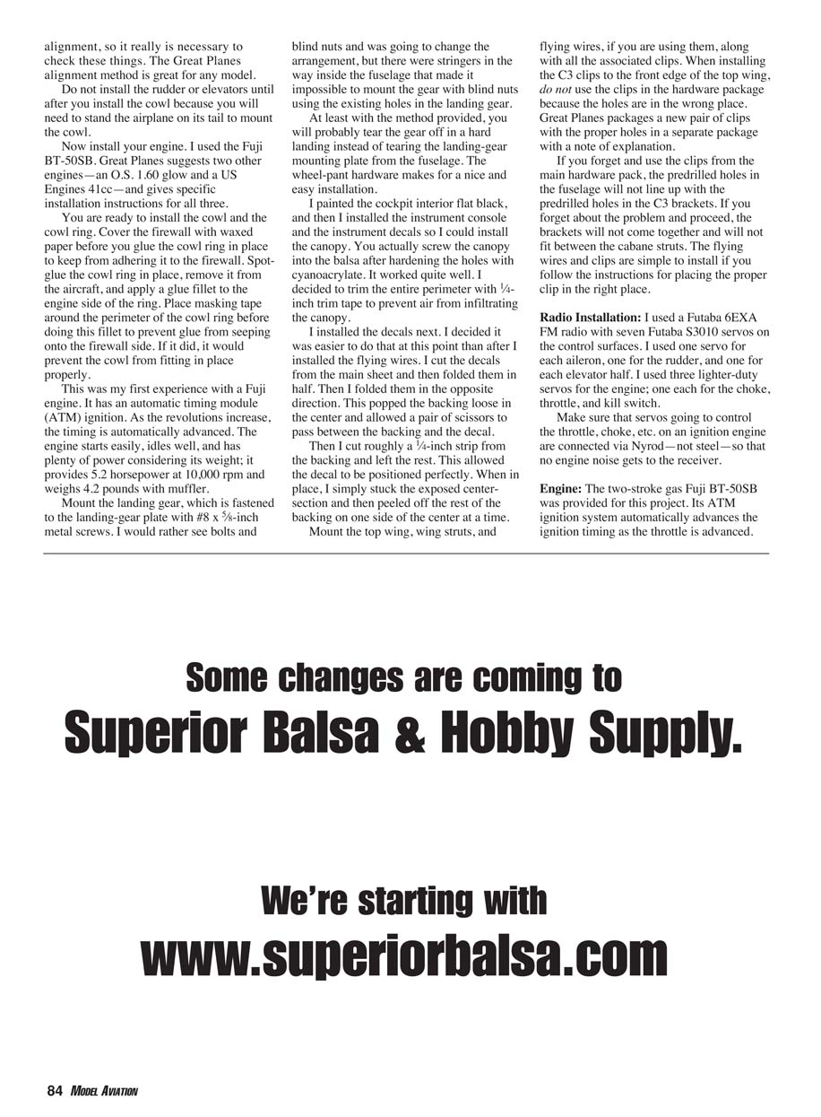 few areas on the fuselage (wing saddle, throttle servo, etc.). Assemble