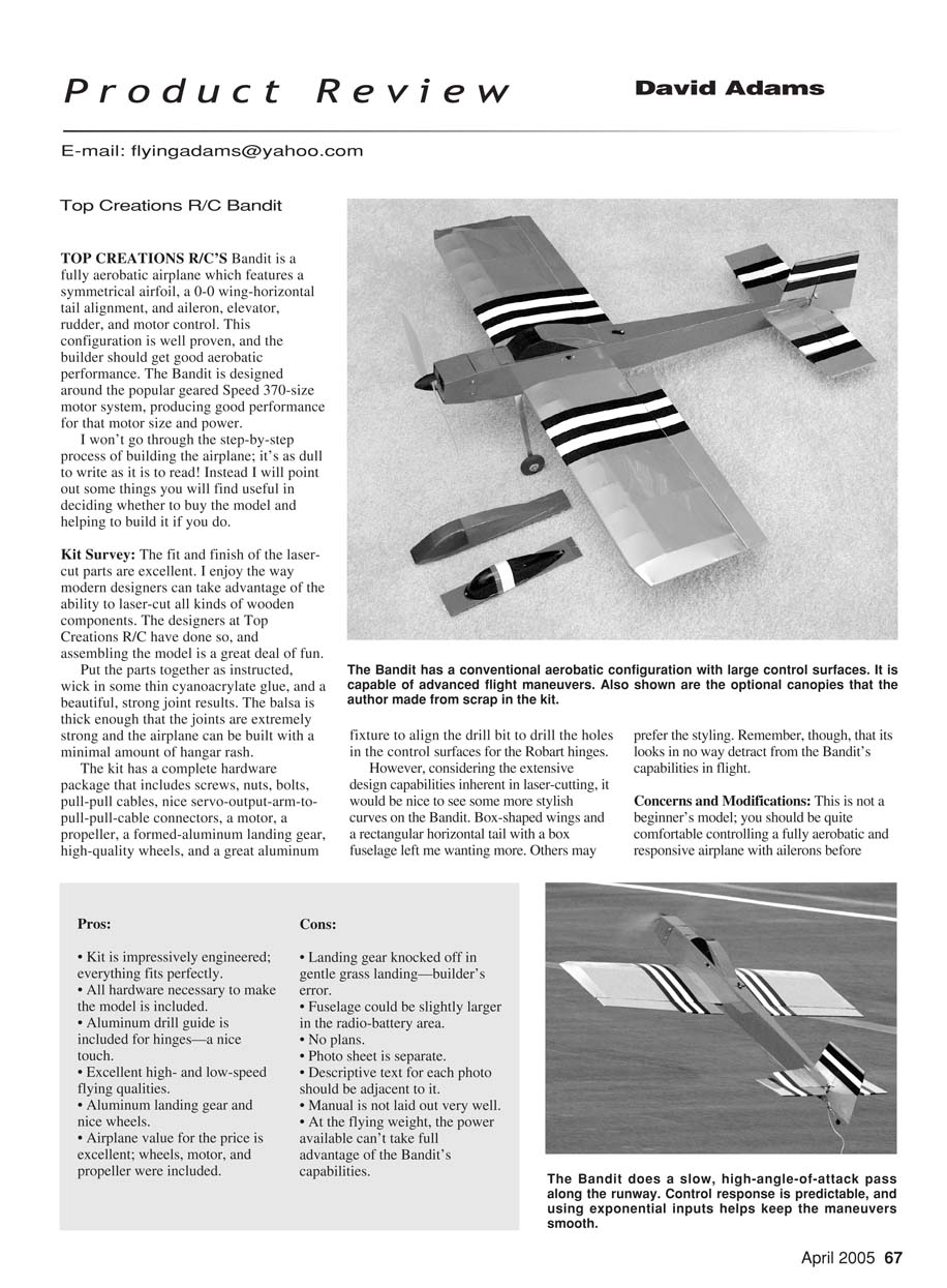 The Bandit has a conventional aerobatic configuration with large control surfaces. It is