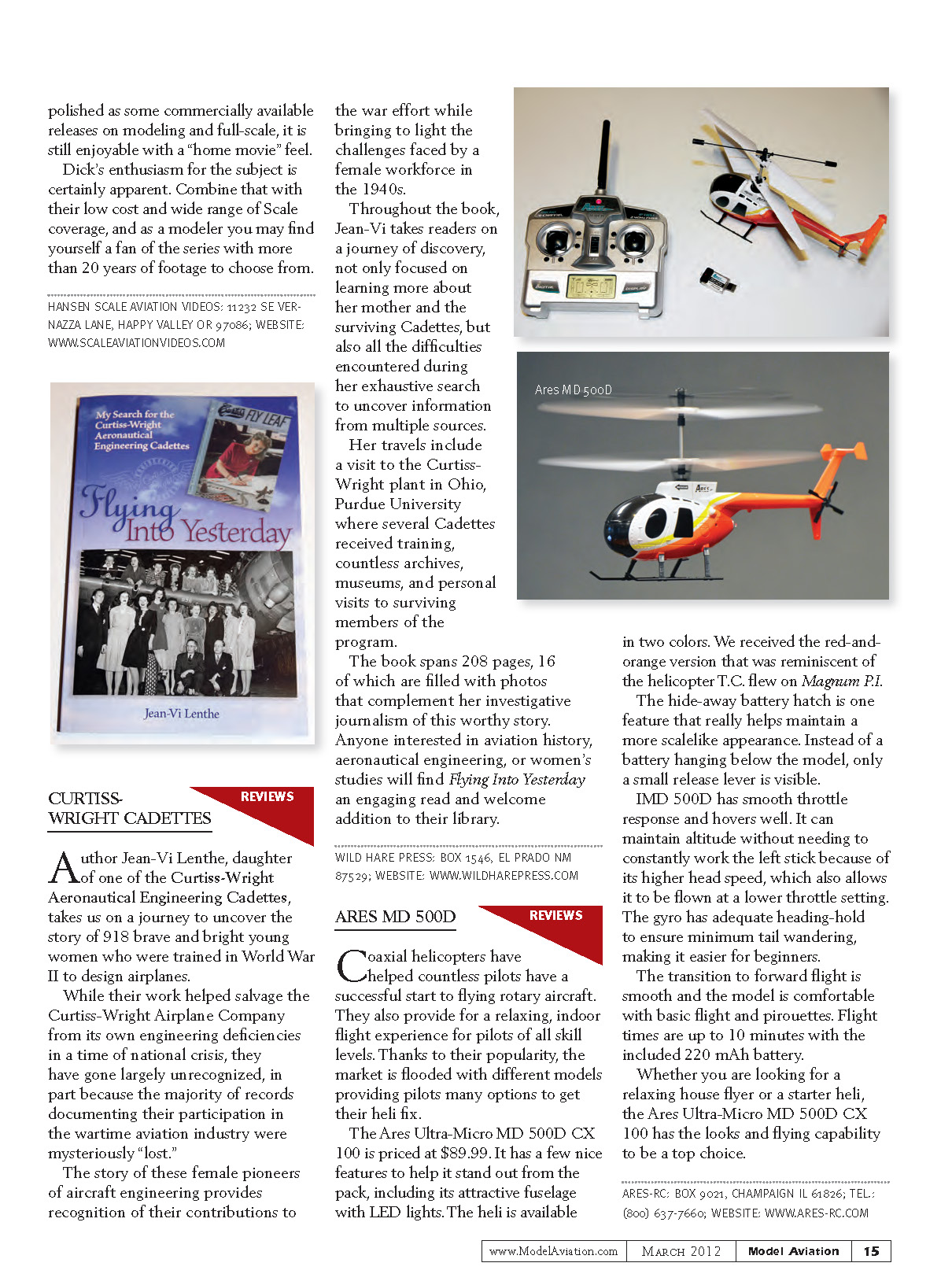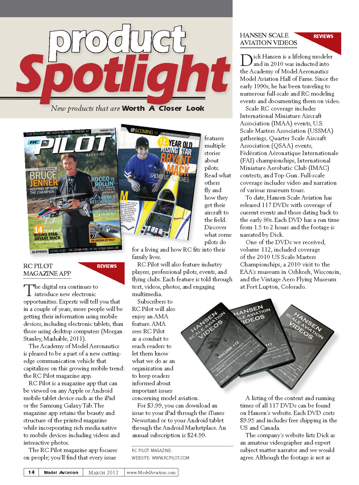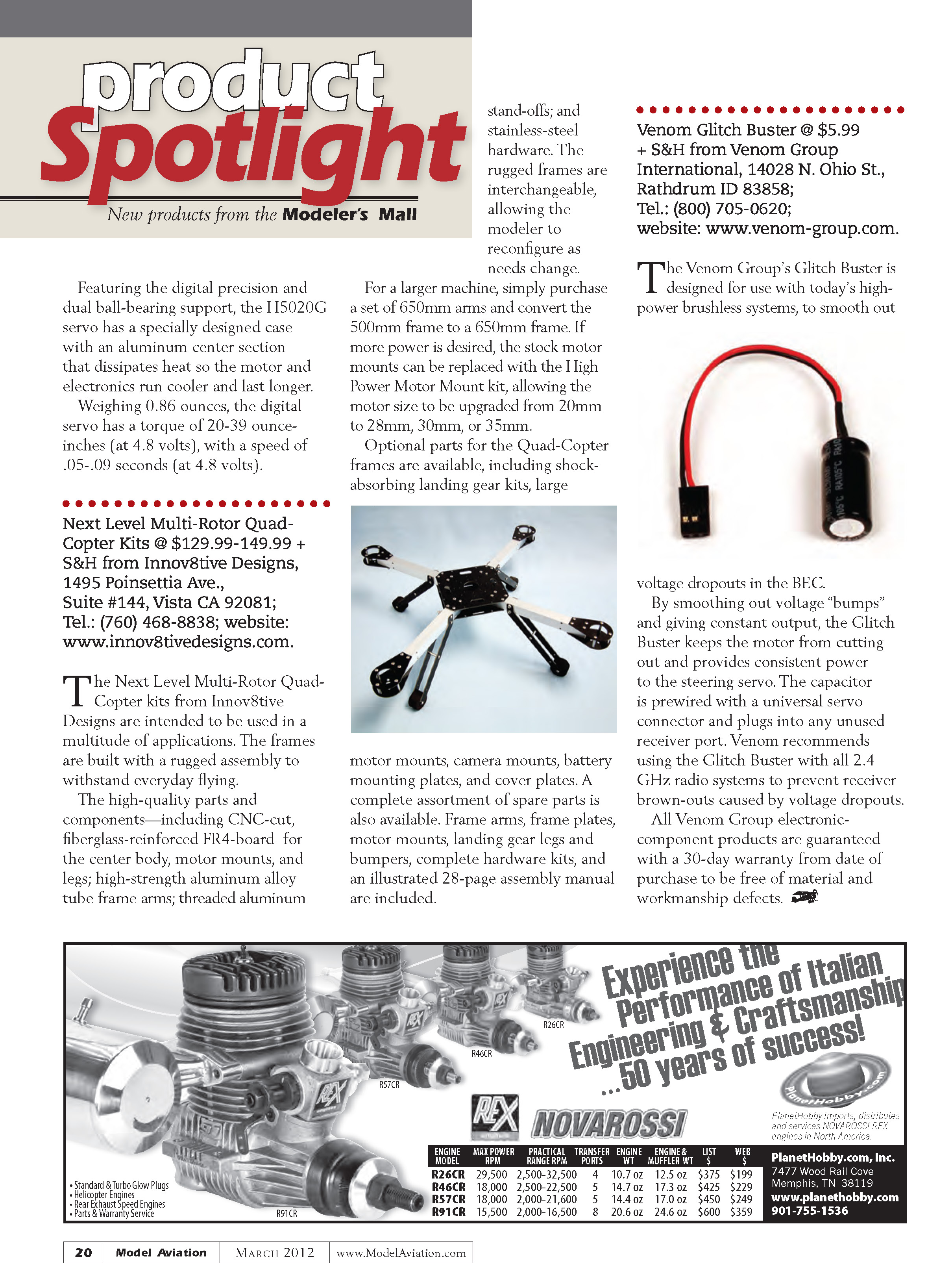 holding power that is second to none.20 Model Aviation MARCH 2012 www.ModelAviation.com