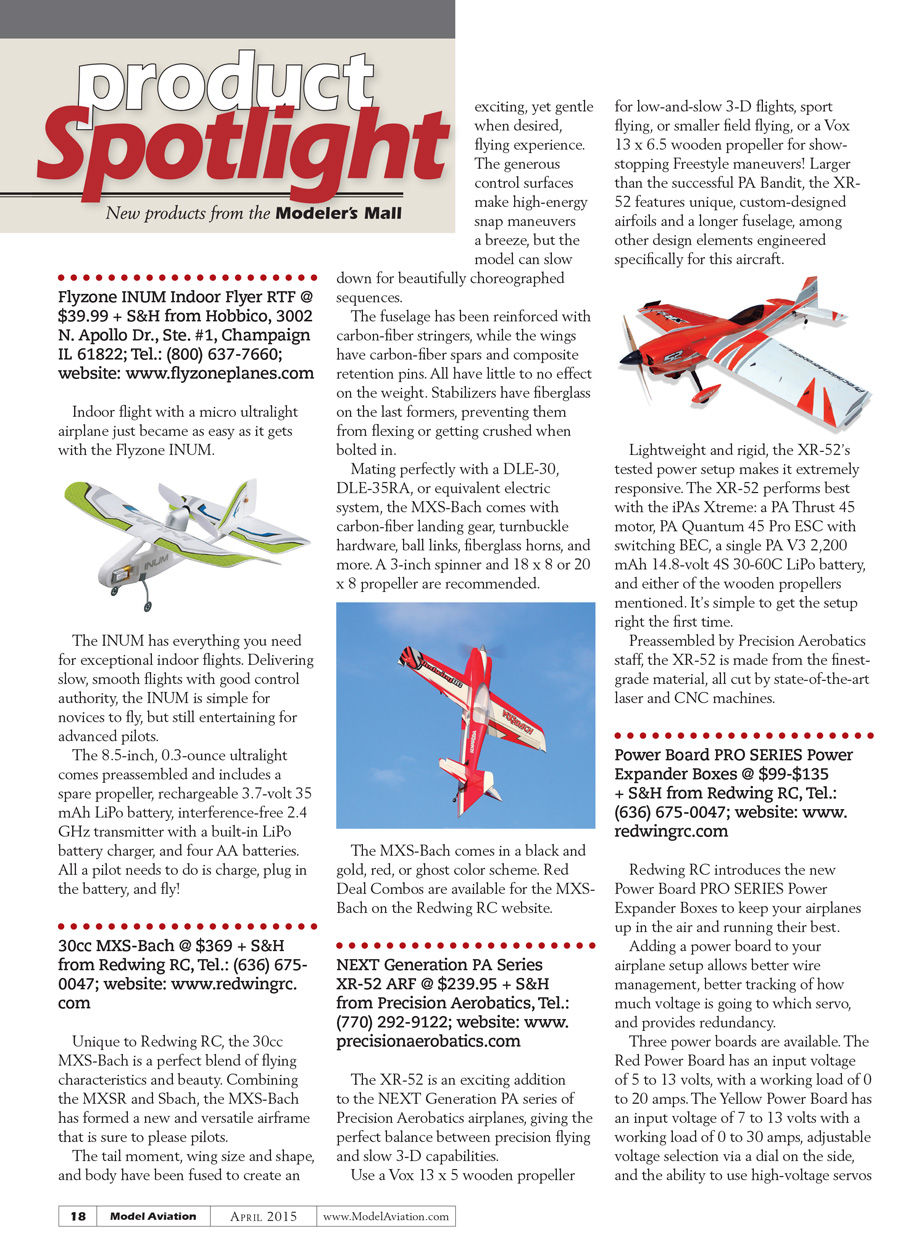 NEXT Generation PA Series XR-52 ARF @ $239.95 + S&H from Precision Aerobatics, email: support@precisionaerobatics.com; website: www.precisionaerobatics.com