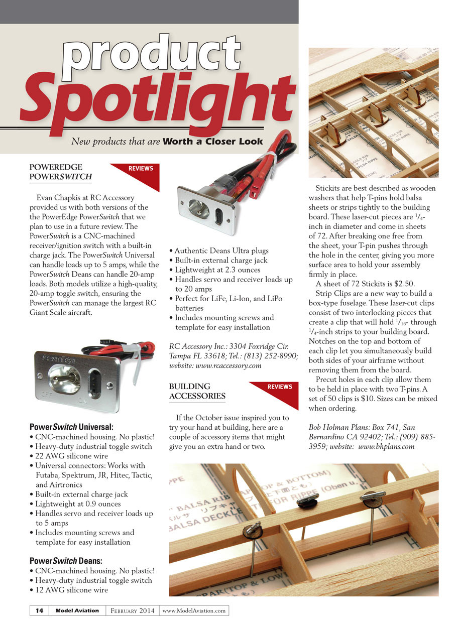 Evan Chapkis at RC Accessory provided us with both versions of the the PowerEdge PowerSwitch which we plan to use in a future review. The PowerSwitch is a CNC-machined receiver/ignition switch with a built-in charge jack. The PowerSwitch Universal can handle loads up to five amps, while the PowerSwitch Deans can handle 20-amp loads. Both models utilize a high-quality 20-amp toggle switch, ensuring the PowerSwitch can handle the largest RC Giant Scale Aircraft.