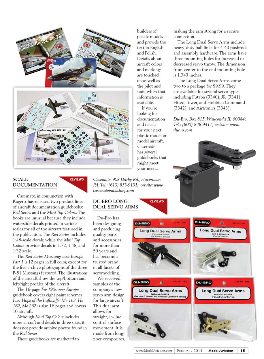 Du-Bro: Box 815, Wauconda IL 60084; Tel. (800) 848-9411; website www.dubro.com