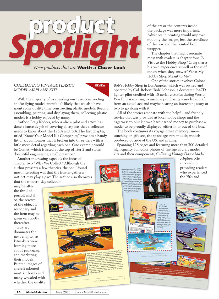 Spanning 128 pages and featuring more than 300 detailed, high-quality, full-color photos of vintage aircraft model kits and their components, Collecting Vintage Plastic Model Airplane Kits succeeds in providing readers who experienced the ’50s and ’60s a treasure-trove of memories. Those who missed the “Golden Age” of plastic models should find it to be an illustrated history lesson.