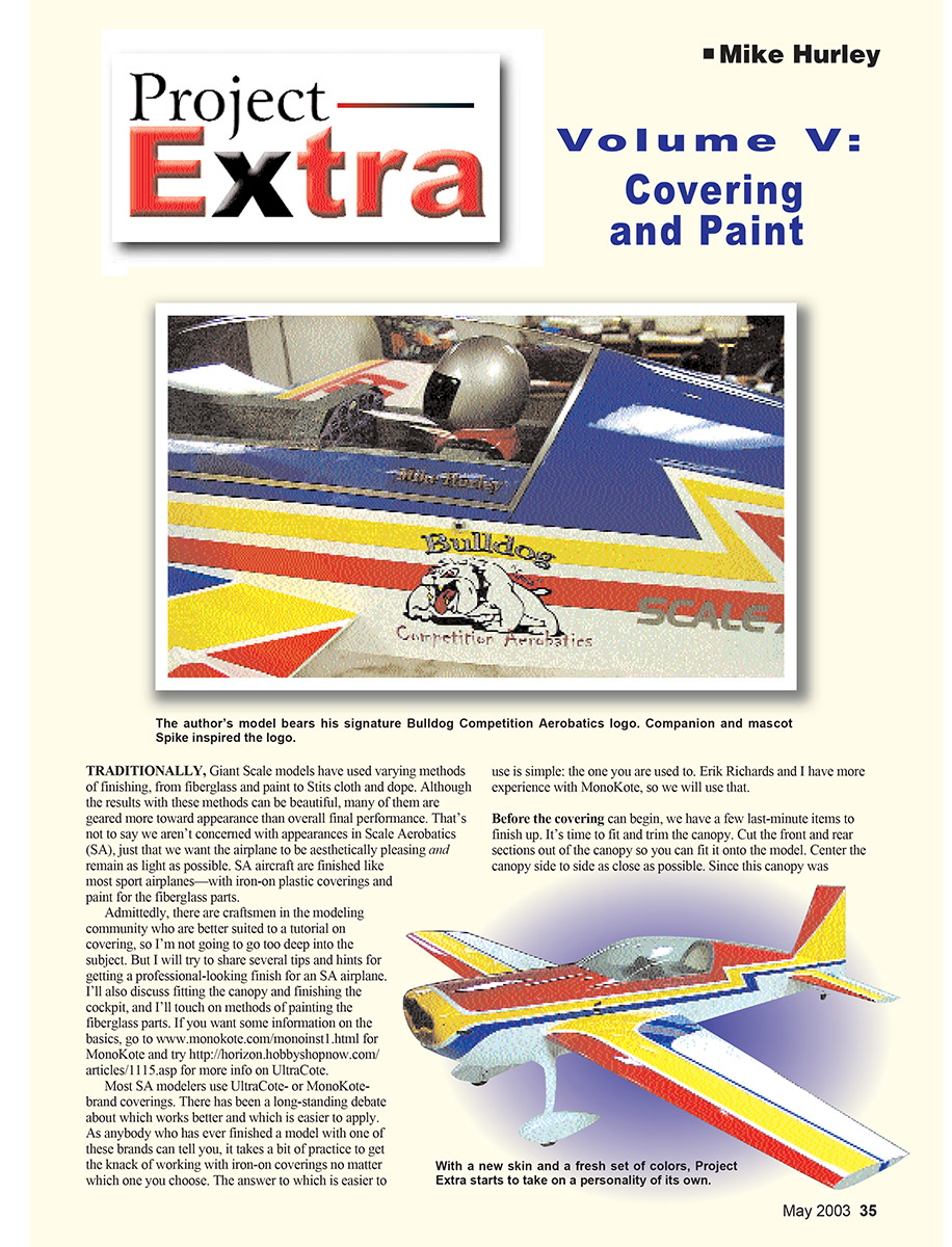 The author’s model bears his signature Bulldog Competition Aerobatics logo. Companion and mascot