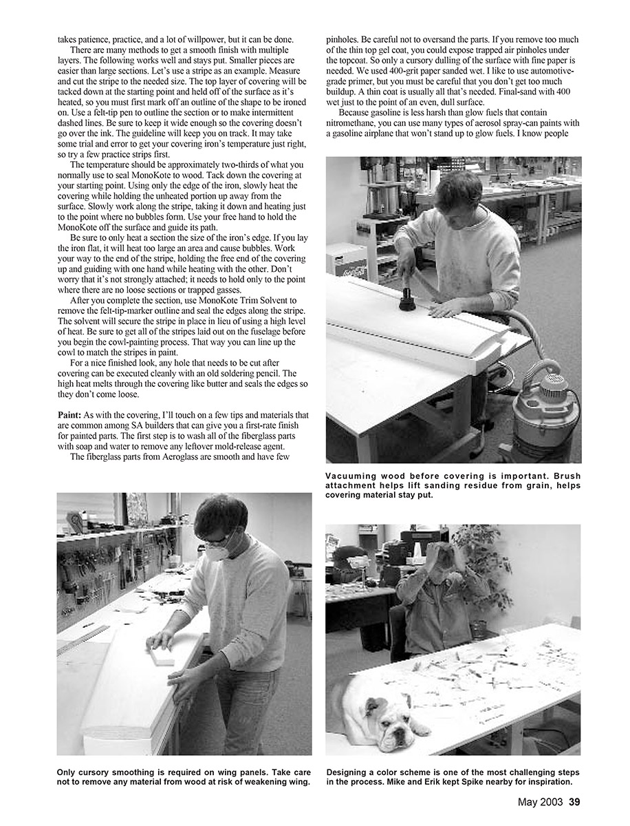 of finishing, from fiberglass and paint to Stits cloth and dope. Although