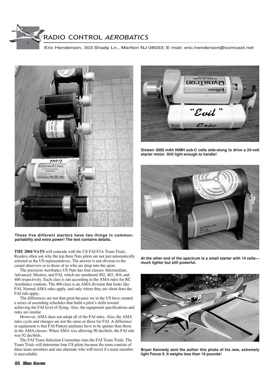 in equipment is that FAI Pattern airplanes have to be quieter than those