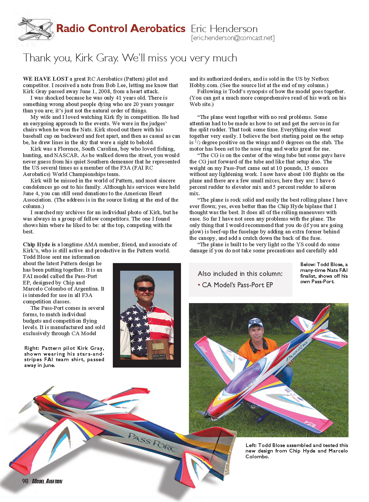 WE HAVE LOST a great RC Aerobatics (Pattern) pilot and