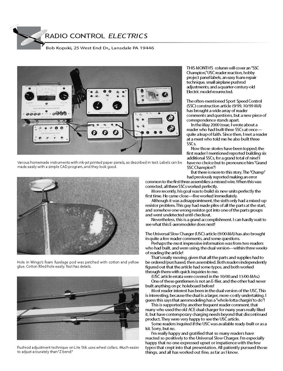 The Universal Slow Charger (USC) article (9/00 MA) has also