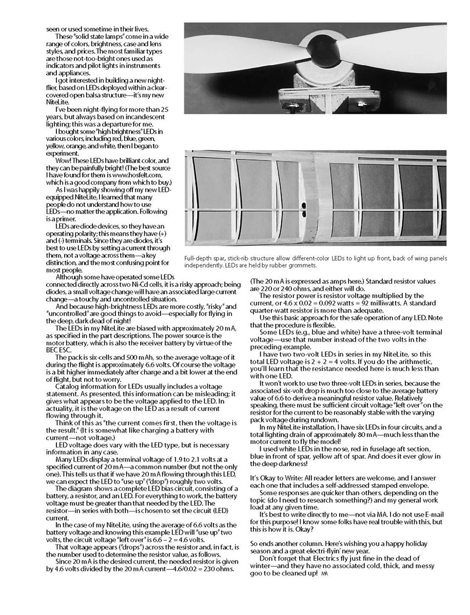 Author’s 12.1-ounce NiteLite has six 500 mAh, 280 motor, Jeti 05 ESC, Hitec 555, S-60