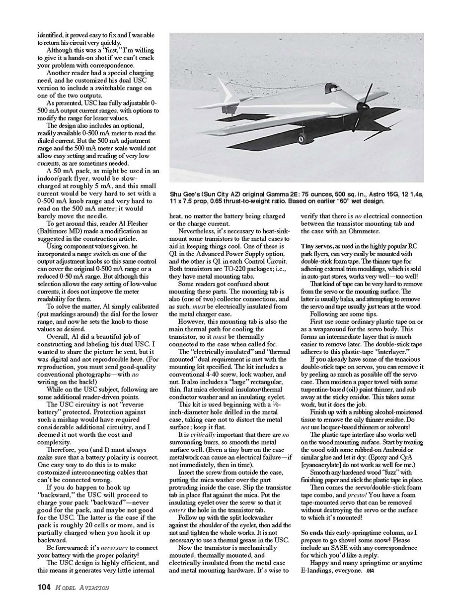 Shu Gee’s (Sun City AZ) original Gamma 2E: 75 ounces, 500 sq. in., Astro 15G, 12 1.4s,