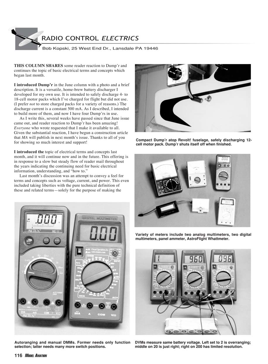 multimeters, panel ammeter, AstroFlight Whattmeter.
