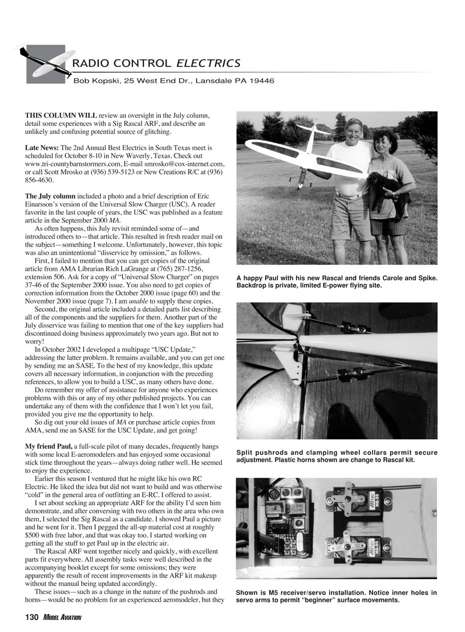 The Rascal ARF went together nicely and quickly, with excellent