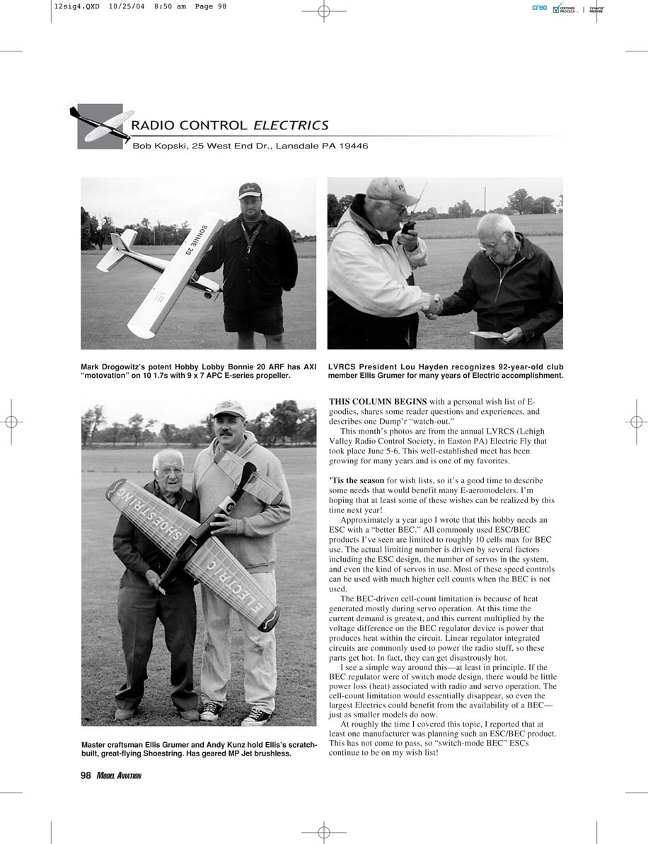 some needs that would benefit many E-aeromodelers. I’m
