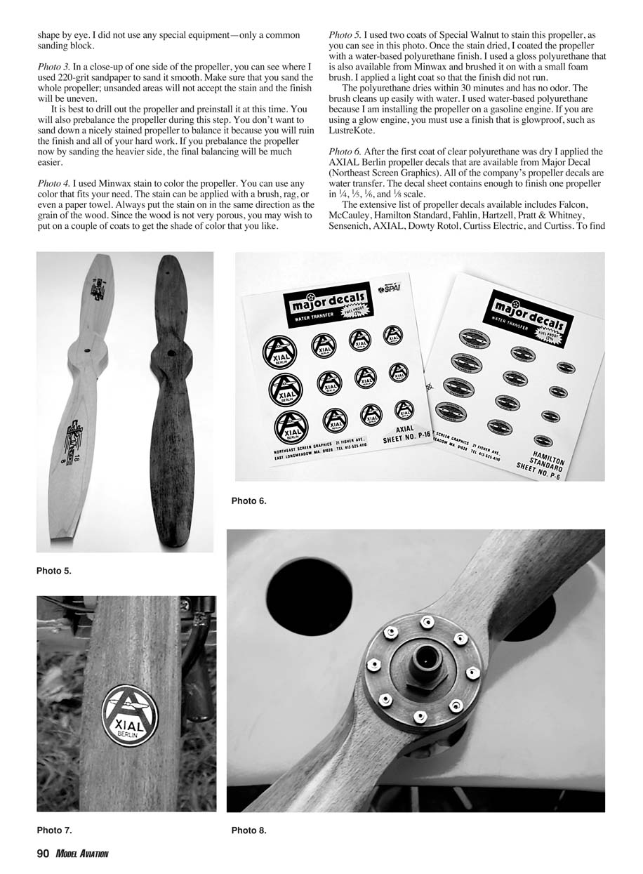 Photo 5. I used two coats of Special Walnut to stain this propeller, as