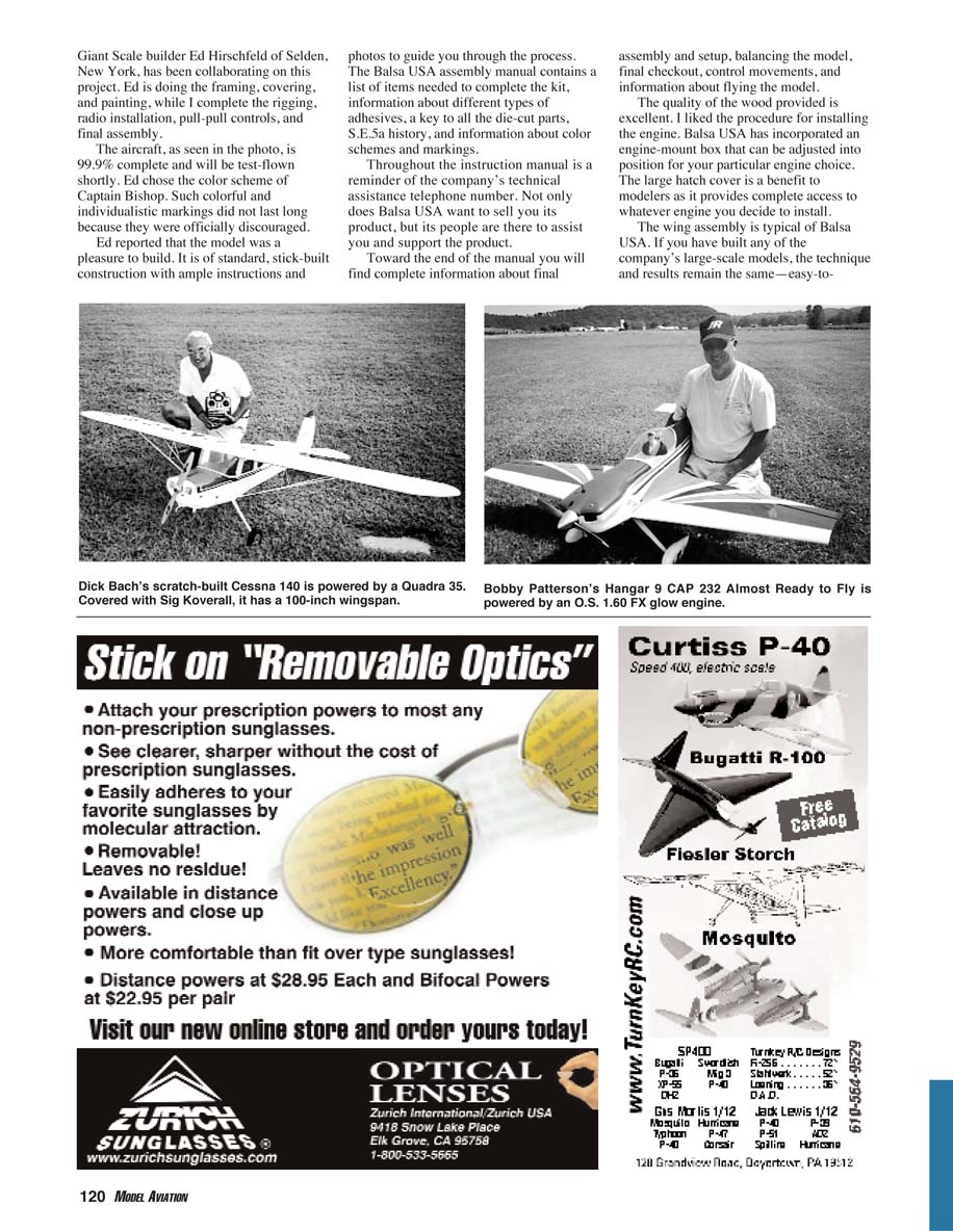 Dick Bach’s scratch-built Cessna 140 is powered by a Quadra 35.
