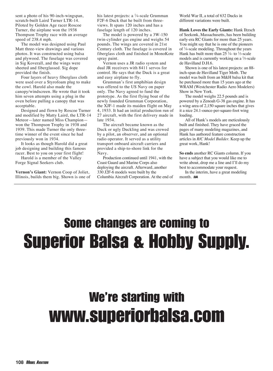 Master builder Hank Iltzsch constructed this 88-inch-wingspan,
