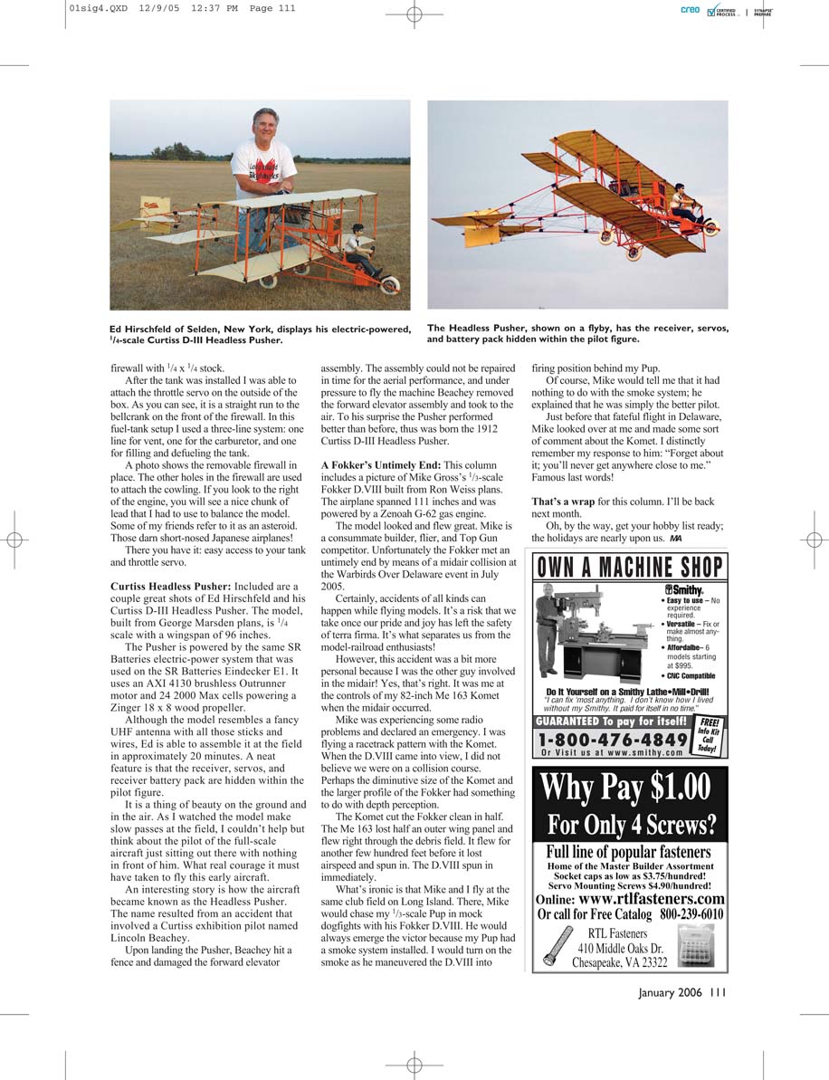 Curtiss Headless Pusher: Included are a
