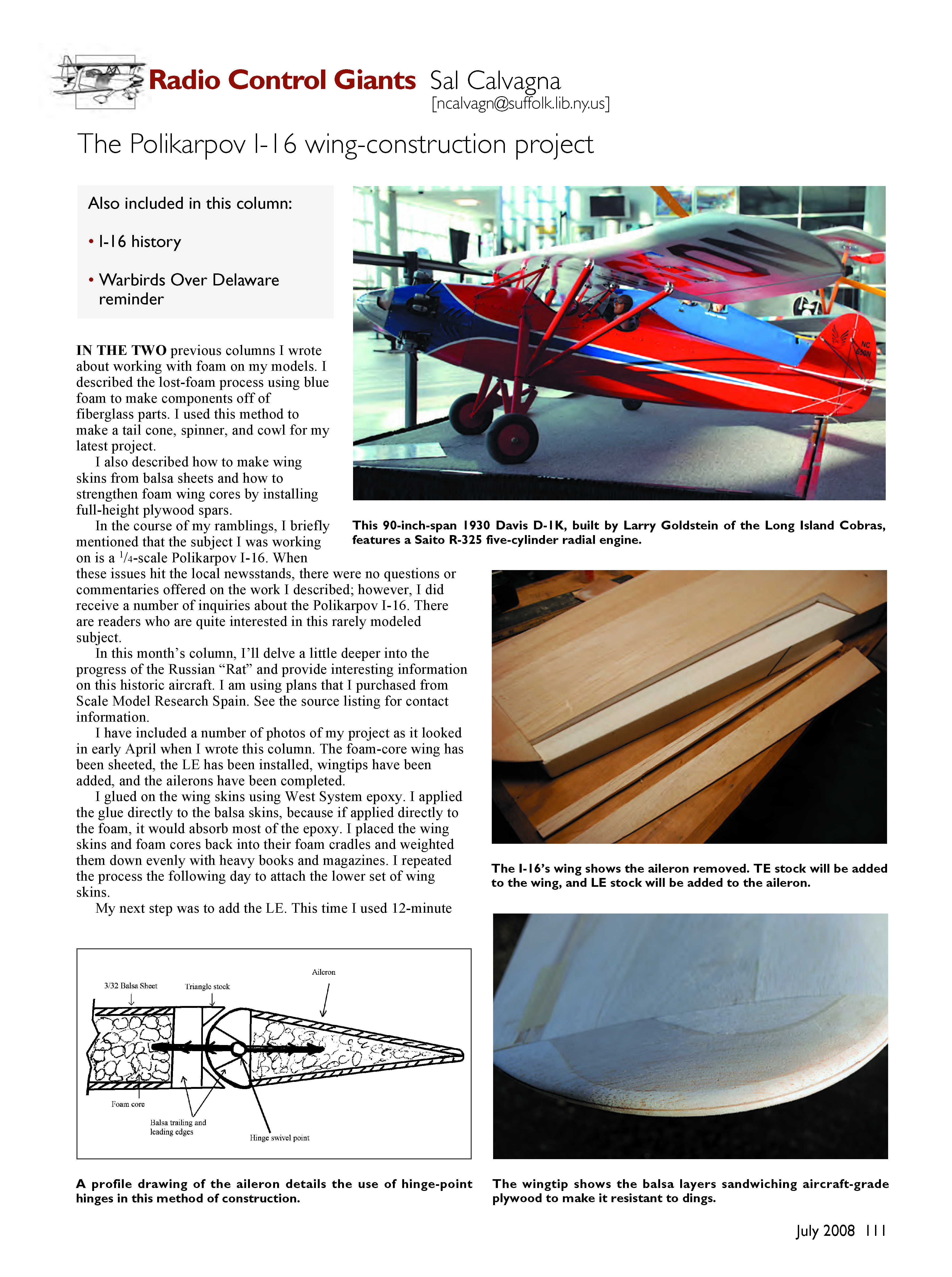 The I-16’s wing shows the aileron removed. TE stock will be added