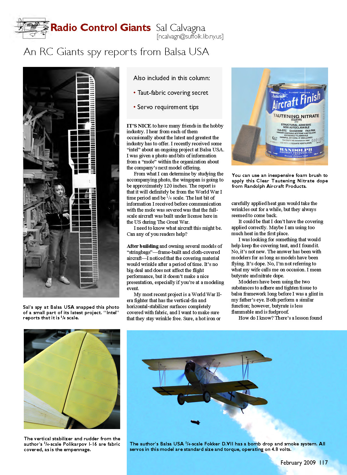 The author’s Balsa USA 1/4-scale Fokker D.VII has a bomb drop and smoke system. All