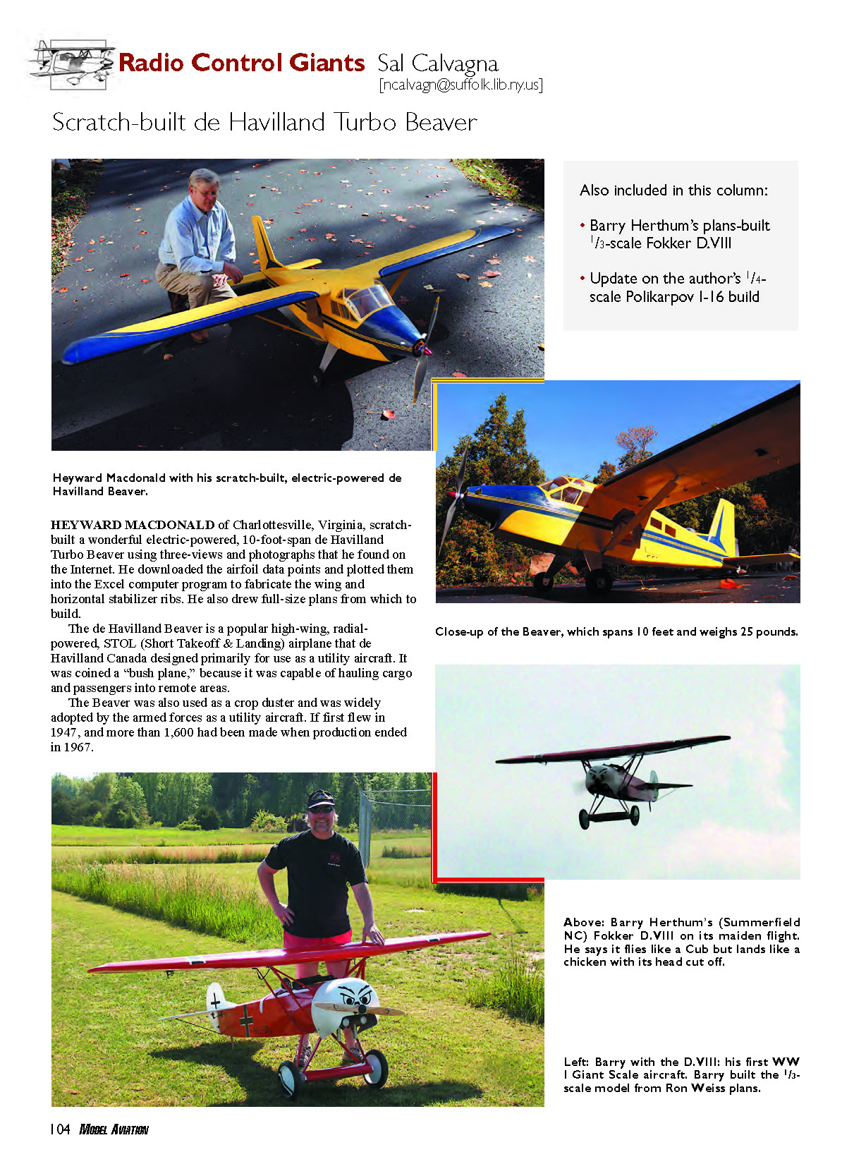 a wonderful electric-powered, 10-foot-span de Havilland