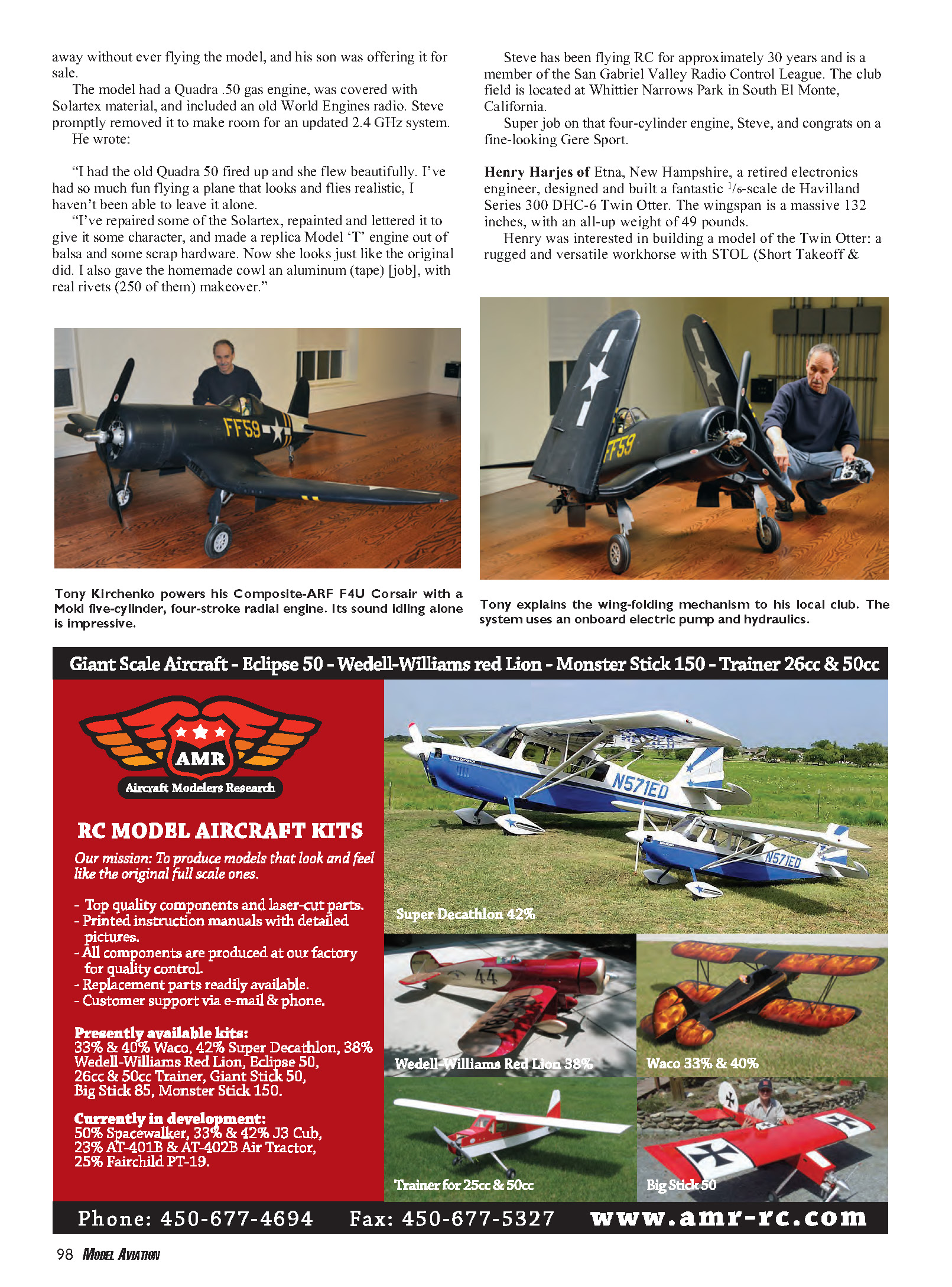 has a wingspan of 96 inches and is powered by a Quadra .50 gas engine.