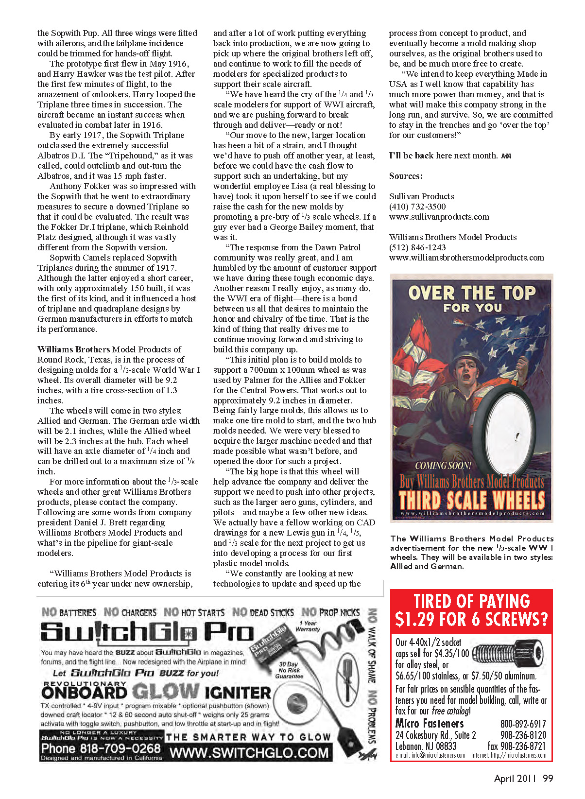 scale modelers for support of WWI aircraft,