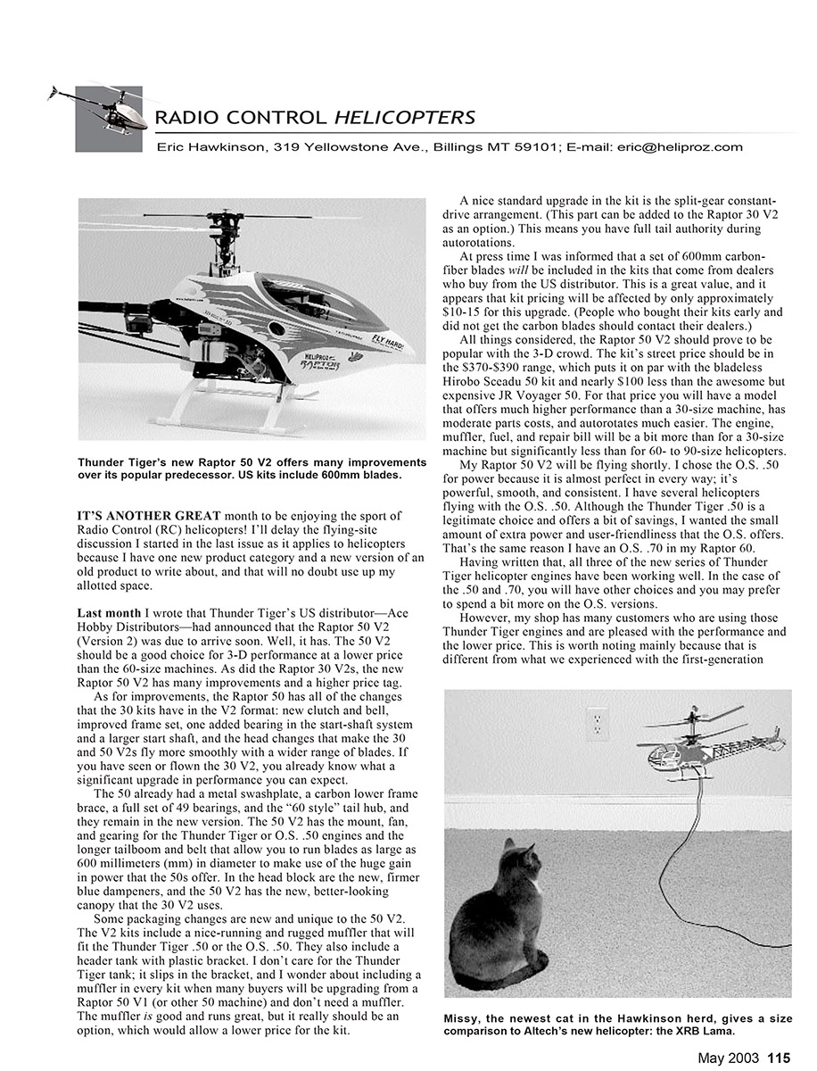 Thunder Tiger’s new Raptor 50 V2 offers many improvements
