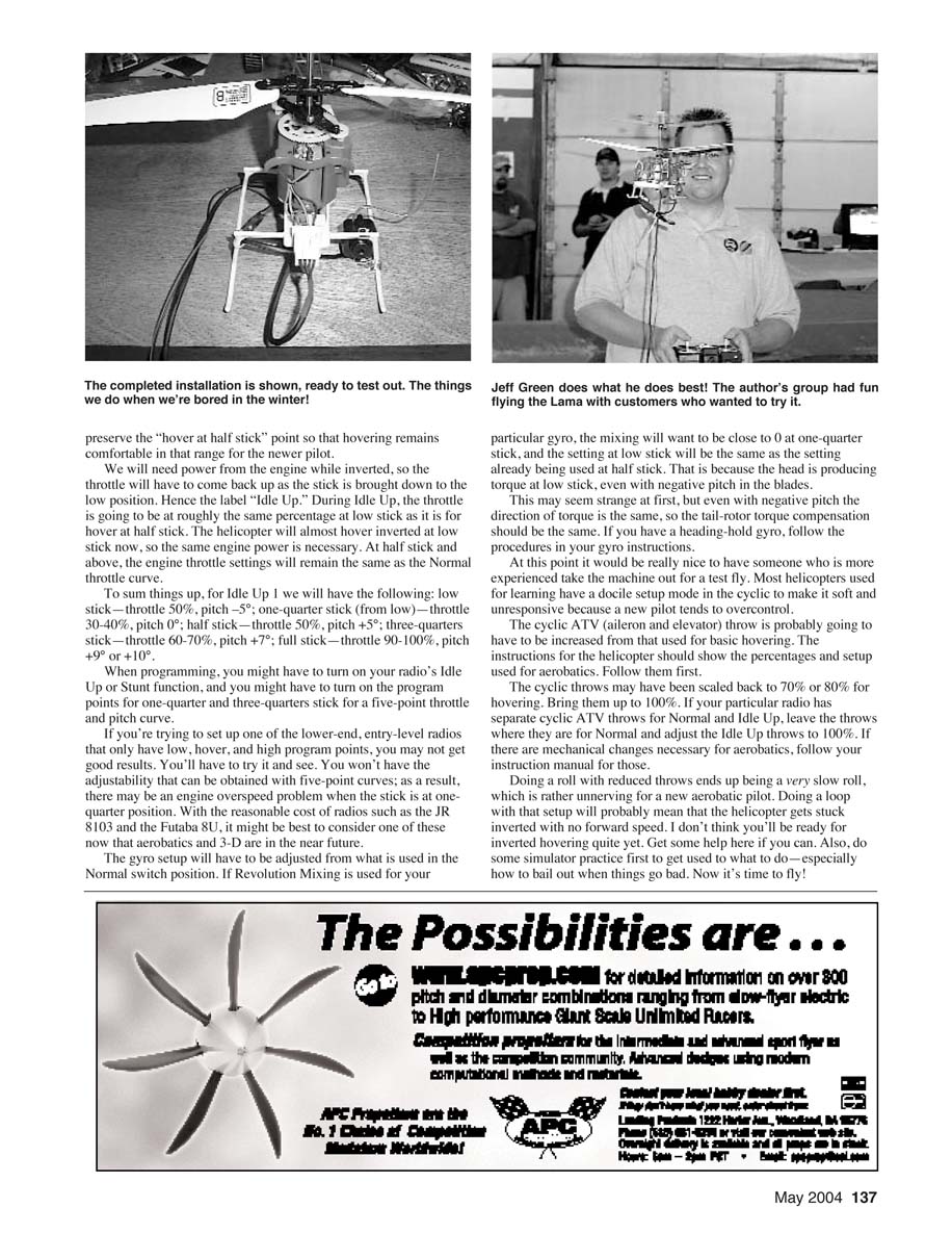 transmitter to set up new curves for the engine and pitch. I’m not