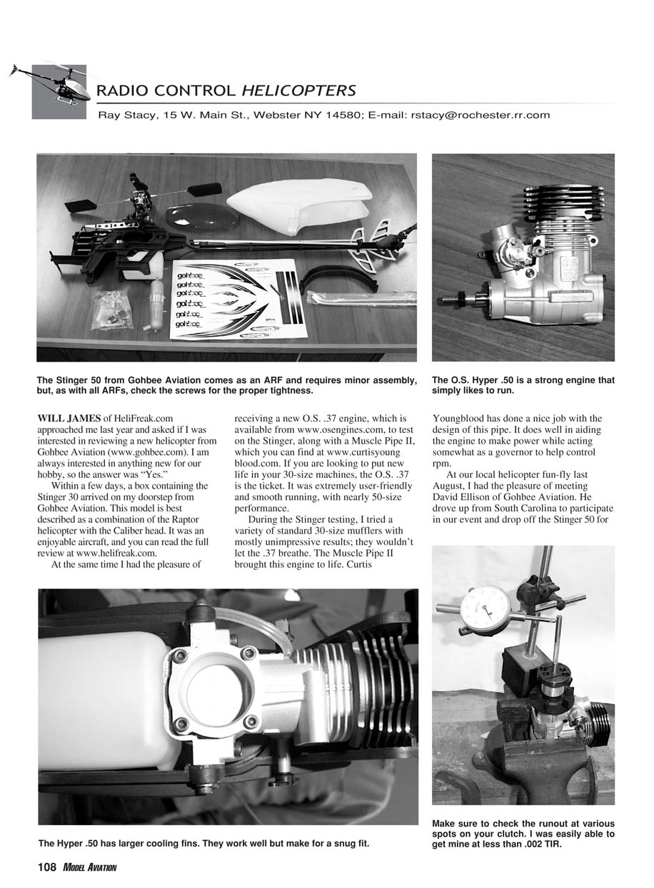 The Stinger 50 from Gohbee Aviation comes as an ARF and requires minor assembly,